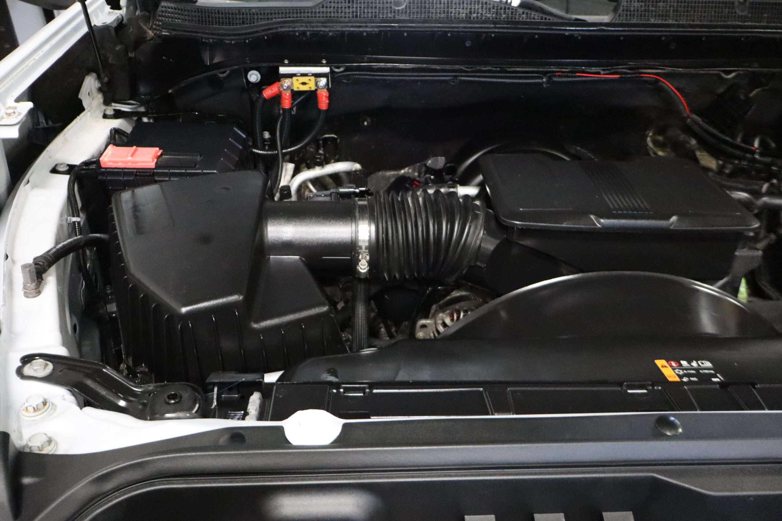 Exterior is Summit White, Interior is Jet Black cloth, bucket seats in front with center console with storage compartment, 8-way power seat with power lumbar, Fleet convenience package, safety confidence package including forward collision alert, automatic emergency braking, traction control, cruise control, power windows and power door locks, tilt wheel, air conditioning, dual glove boxes, MyLink audio system with 7″ color touch screen, Apple Car Play capable, Android Auto, AM/FM stereo, XM satellite radio ready, back up camera, front and rear parking assist, compass/temperature/mileage display, remote entry, driver’s information center, hill descent control, 120v outlet, power/heated folding extending tow mirrors with signals, trailering package with receiver, integrated brake controller and trailer hitch lighting.
