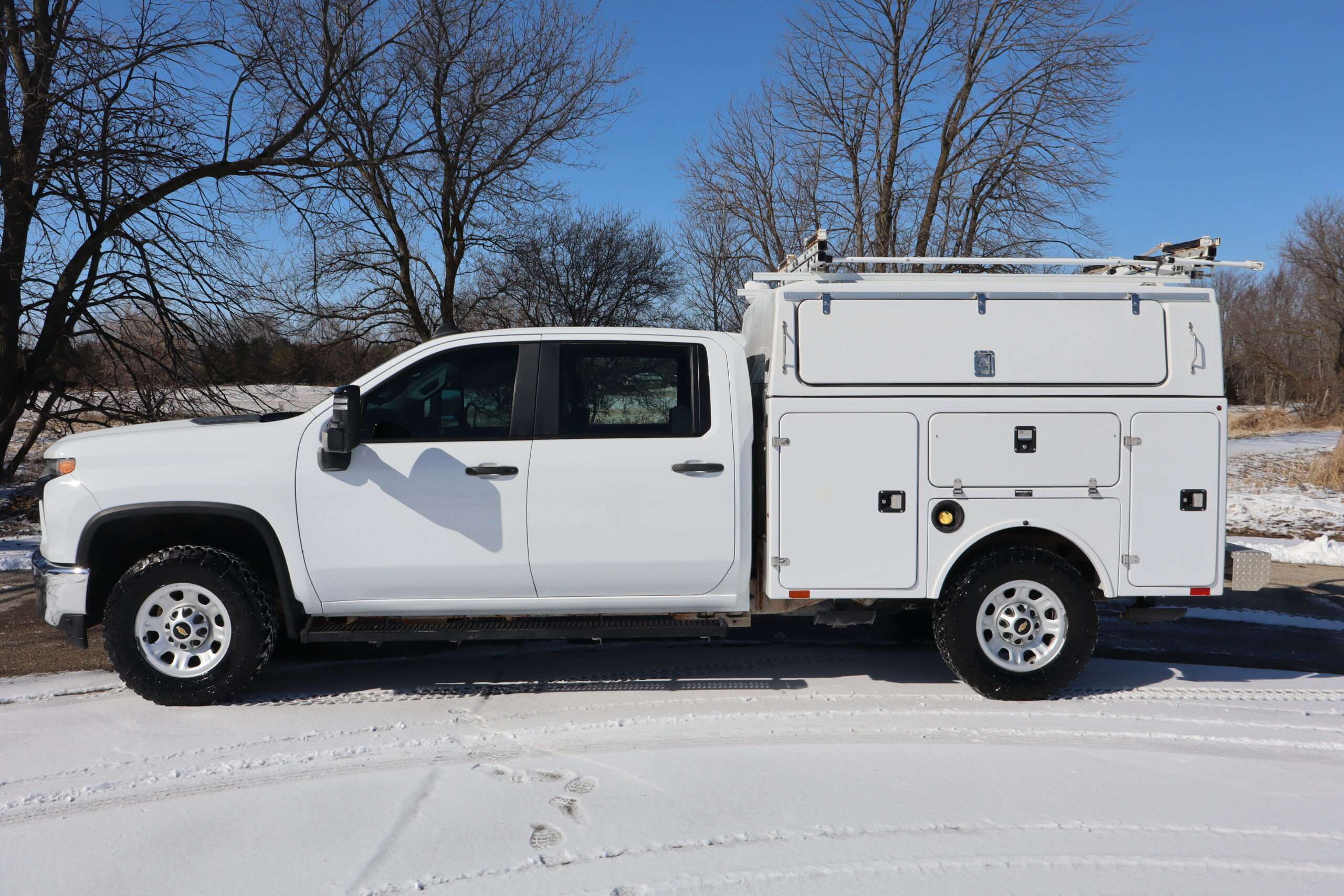 1GC1YLE77NF1824342022 CHEVROLET 2500HD, CREW CAB, WT, FLEET CONVENIENCE PACKAGE, SAFETY CONFIDENCE PACKAGE, BACK UP CAMERA, 7″ TOUCH SCREEN, NEW TOYO TIRES, BRAND FX FIBER GLASS COVERED UTILITY/SERVICE BED WITH ERGO RACK LADDER RACK, CARGO GLIDE ROLL OUT STORAGE, THIS IS A SUPER CLEAN METICULOUSLY MAINTAINED RUST FREE SOUTHERN 1 OWNER TRUCK WITH 74,156 MILES WITH A CARFAX.