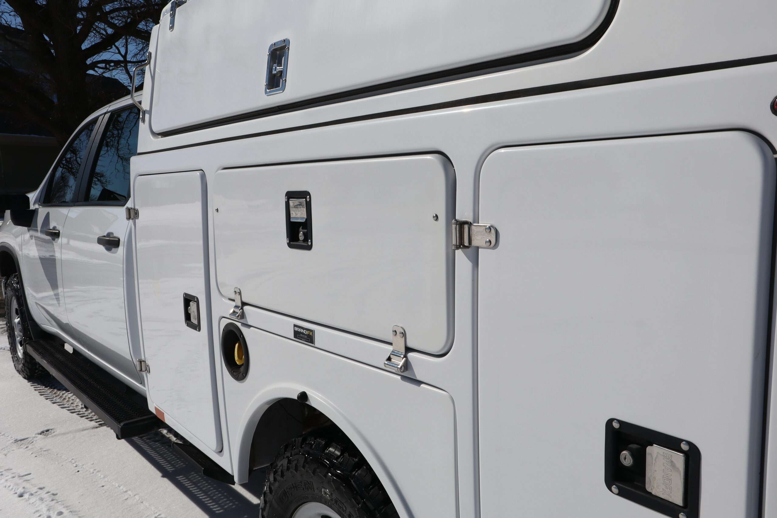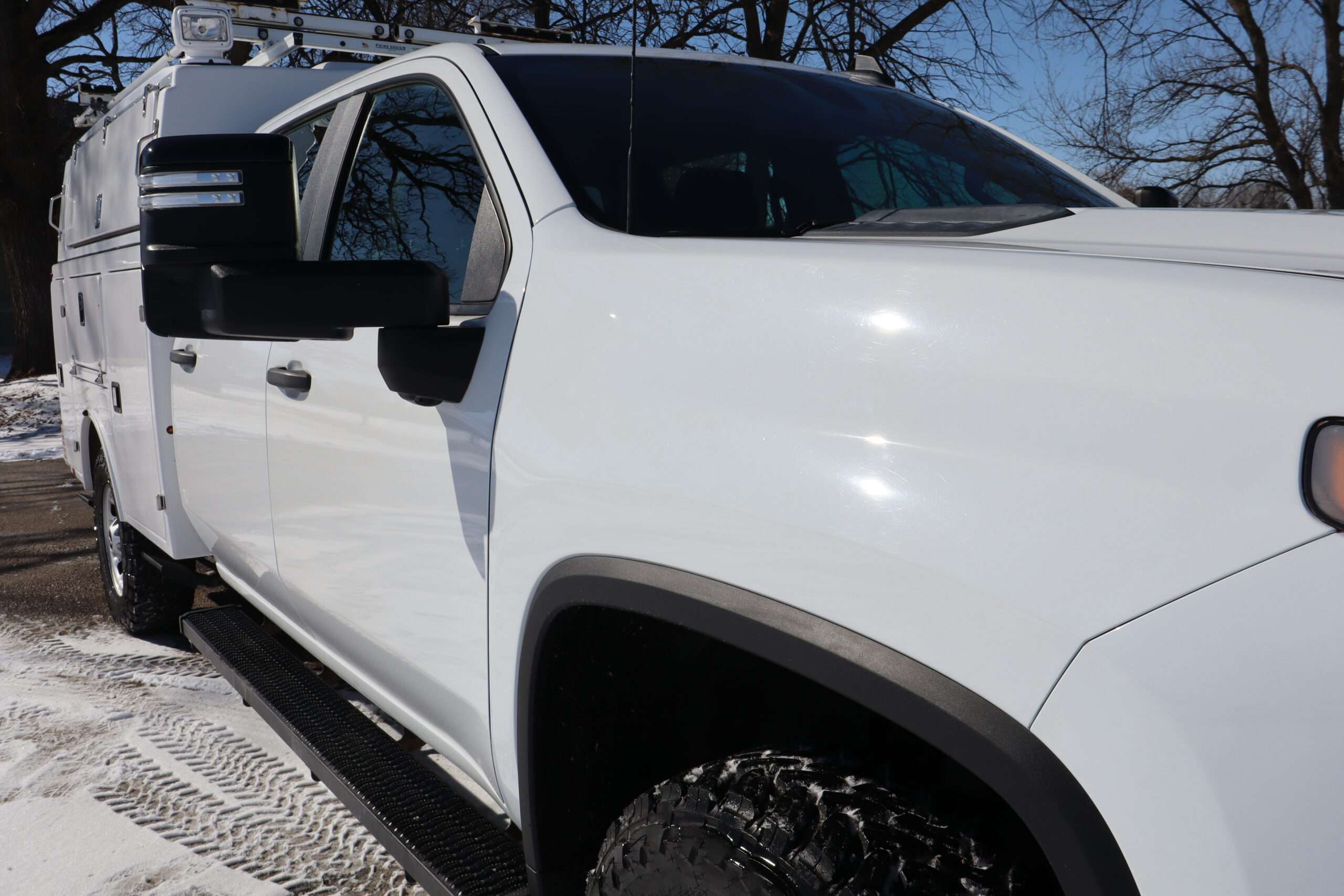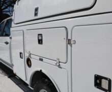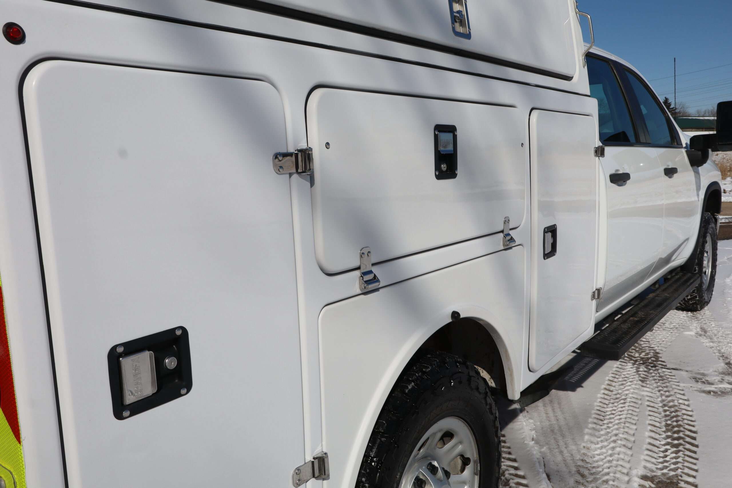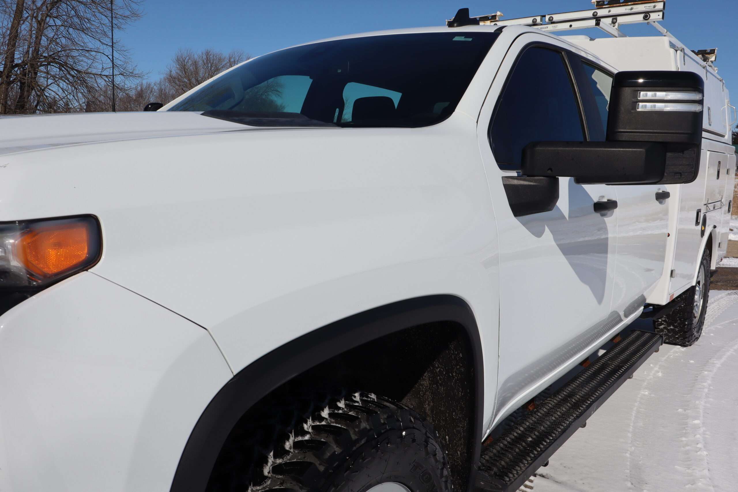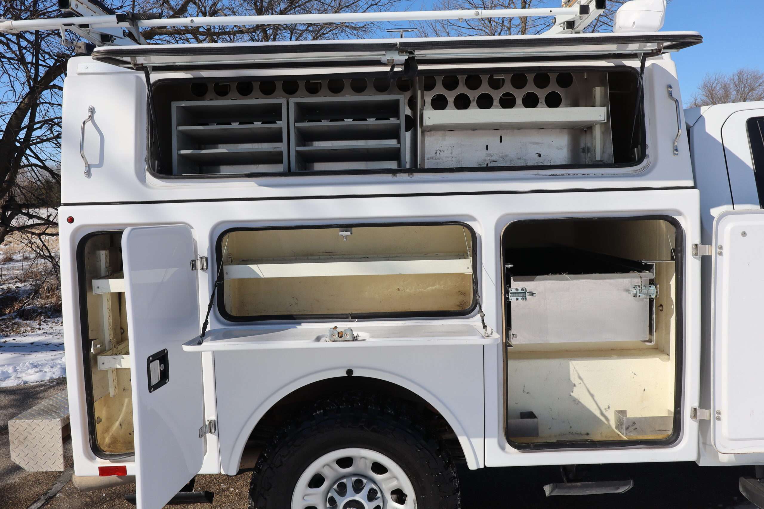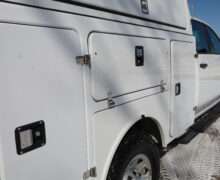 EXTRAS: Brand 8’x6′-8″ FX fiber glass covered Utility/Service bed with Ergo rack ladder, cargo glide slide out storage tray, heavy duty step boards and Ram computer tray.