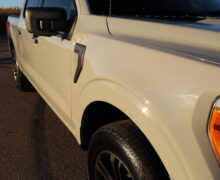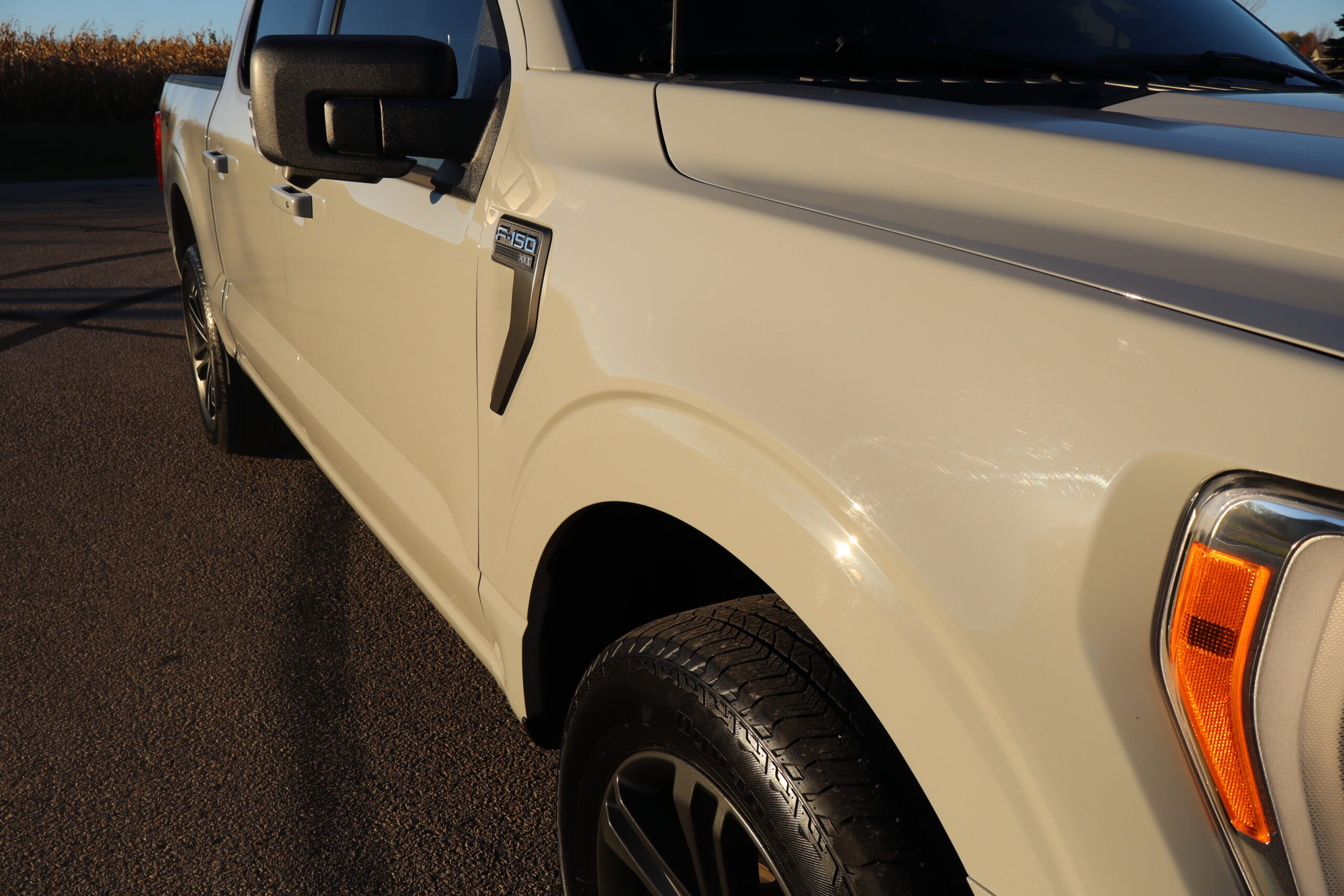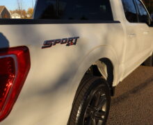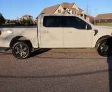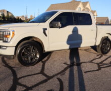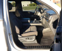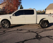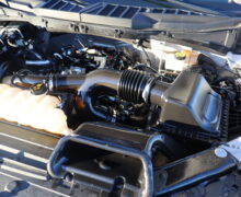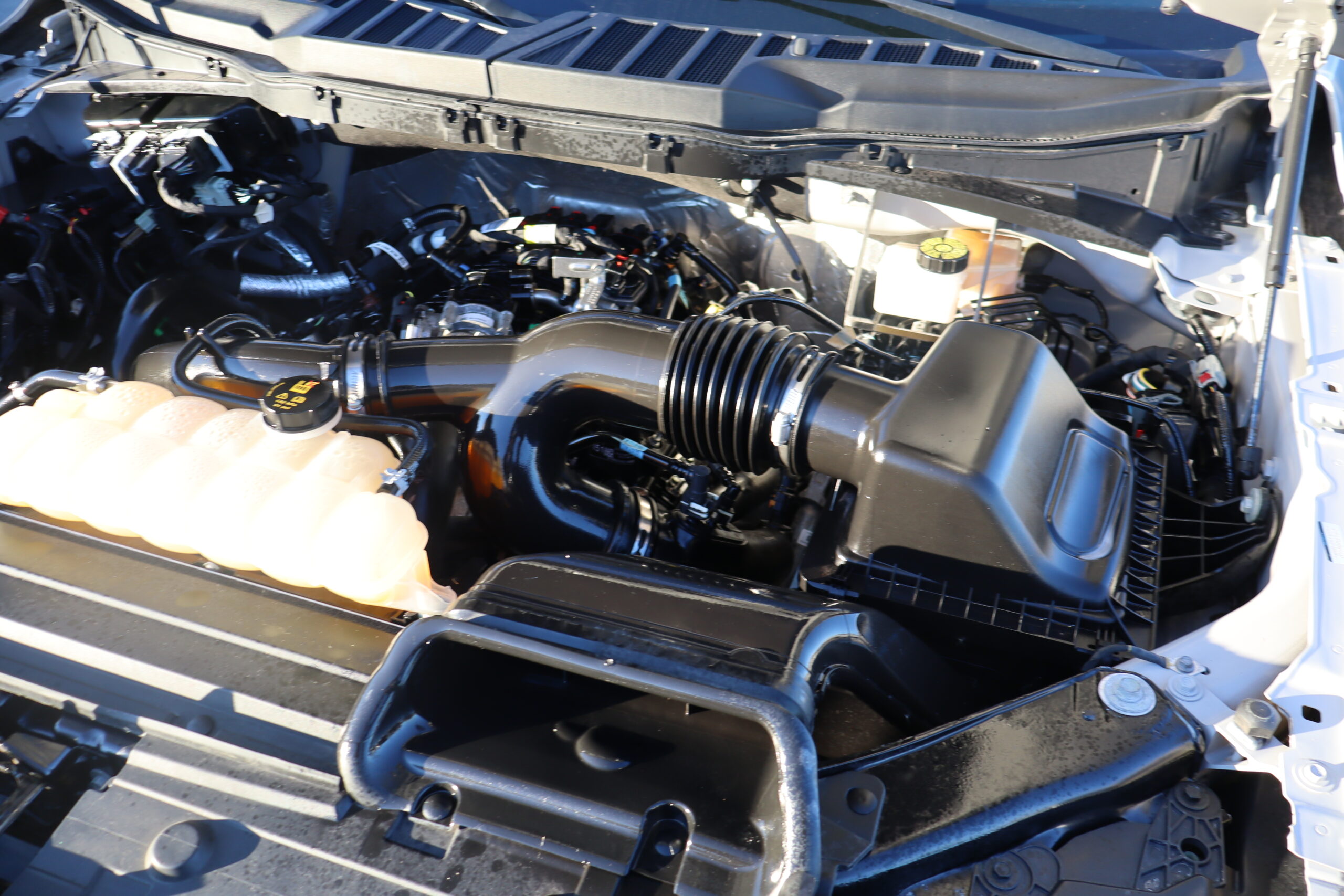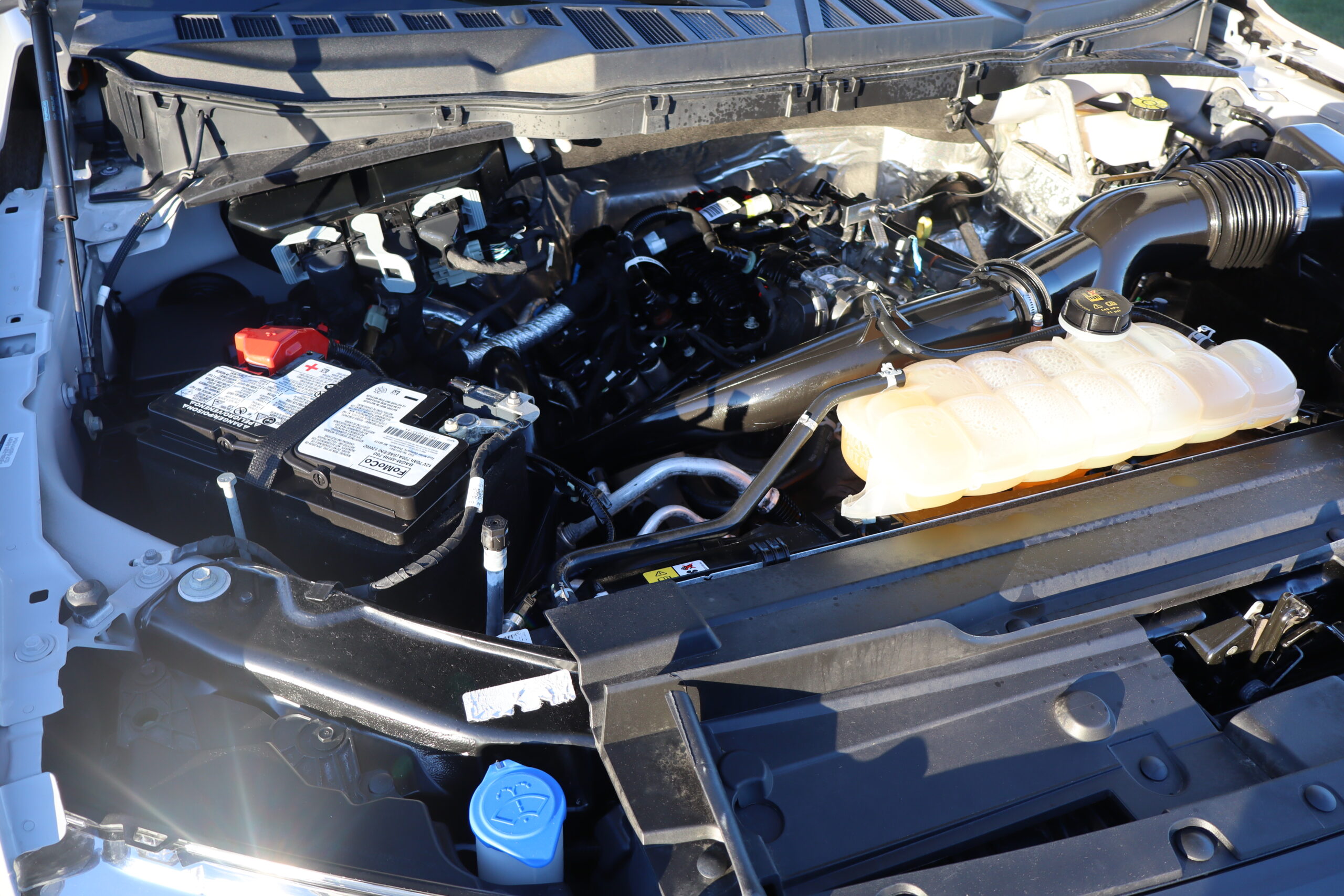 Motor is a 2.7L Eco Boost V6 gas, 10-speed automatic transmission with optional tap shift, turn dial 4WD, 3.55 axle ratio, 20″ Factory dark aluminum wheels with 275/60R20 Hankook Dyna Pro AT2 tires.