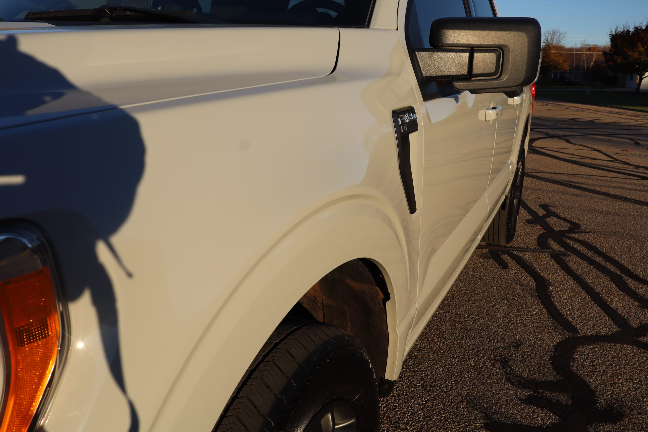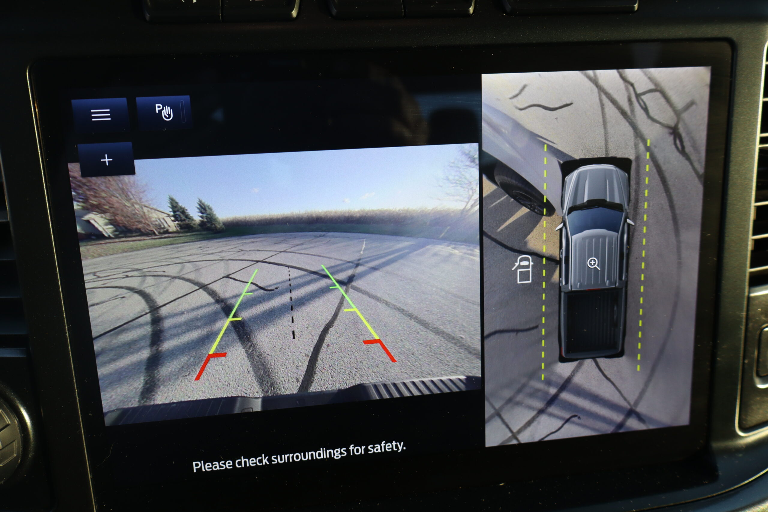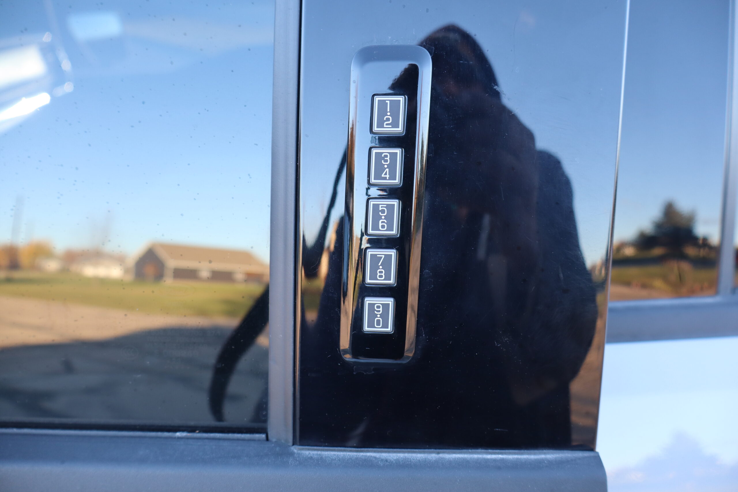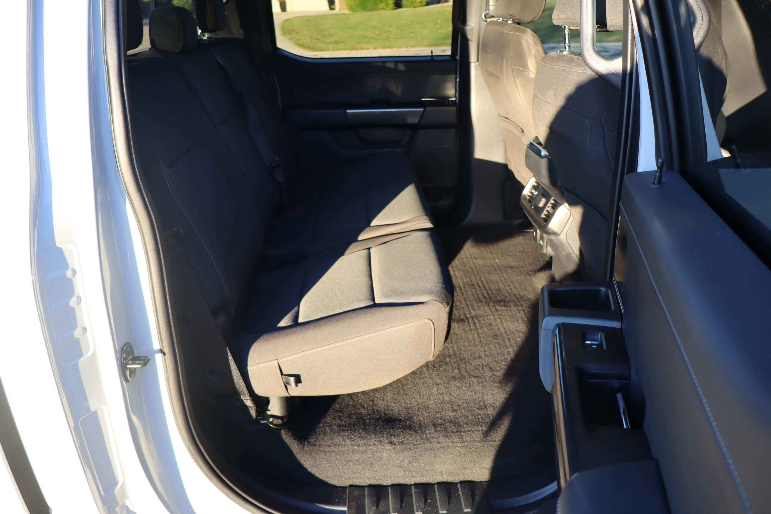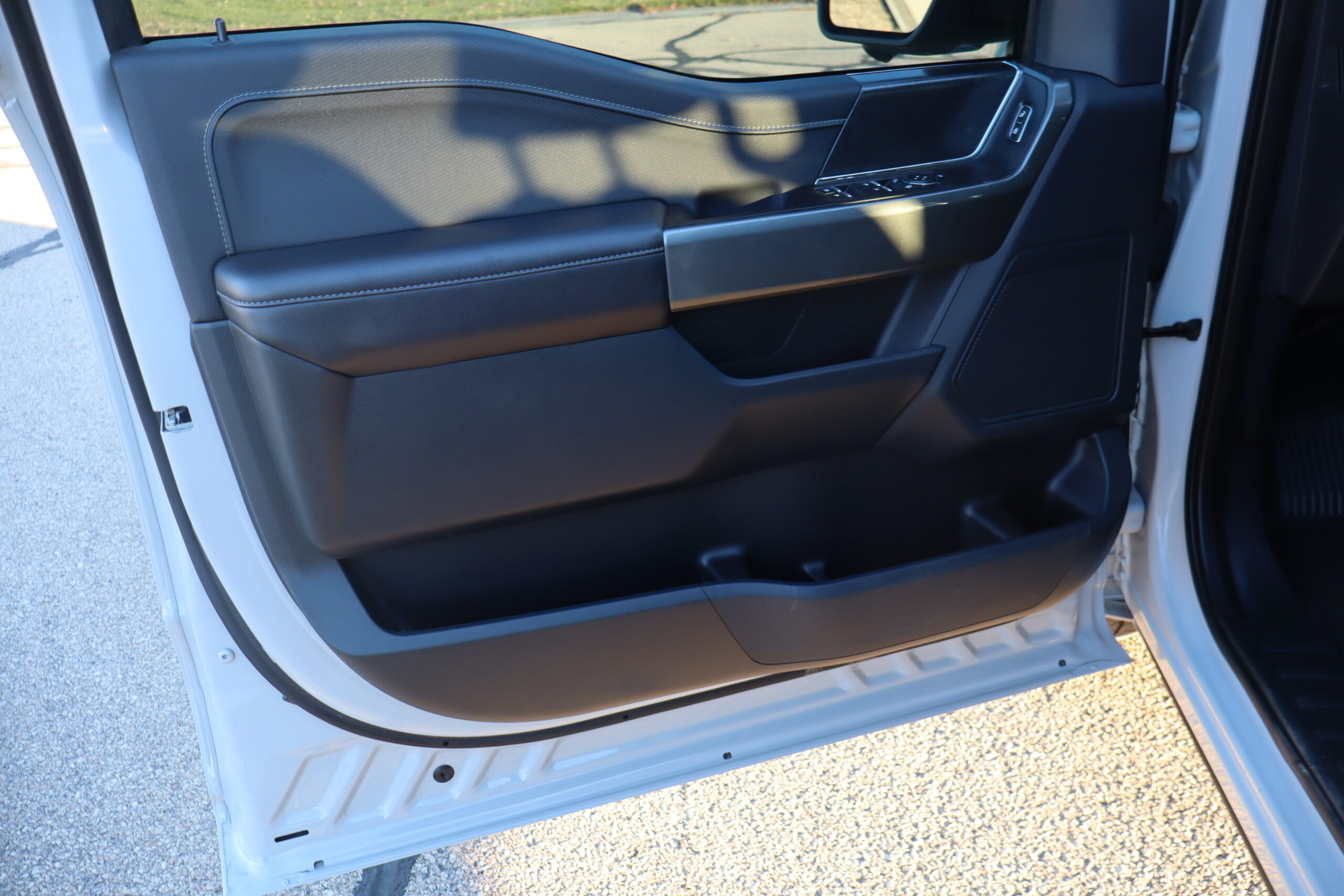 Exterior is Avalanche, Interior is Black sport cloth, heated way power bucket seats in front with hard center console, 8-way power driver’s and 6-way power passenger seat with power lumbar, 60/40 rear folding bench with under seat storage, power windows and power door locks, tilt and telescoping wheel, cruise control, air conditioning, electric rear window defrost, climate control, 12″ touch screen, navigation, AM/FM stereo, Android Auto, Apple Car Play, Sirius satellite radio ready, dual glove boxes, driver’s information center, Bluetooth capabilities, SYNC 4, multi-function steering wheel controls, compass/temperature/mileage display in dash, 360 view back up camera, back up assist, remote entry, door code entry, remote start, traction control, hill start assist, auto dimming rear view mirror, 120v converter, 400w bed outlet, power tailgate with remote, LED head lights, tail lights and fog lights, side air bags, power/heated folding mirrors with turn signals, sliding rear window, dark tinted glass, LED box lighting, Pro trailer back up assist, tow package with receiver and trailer wiring, factory electronic brake controller and slip in bed liner.