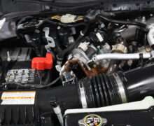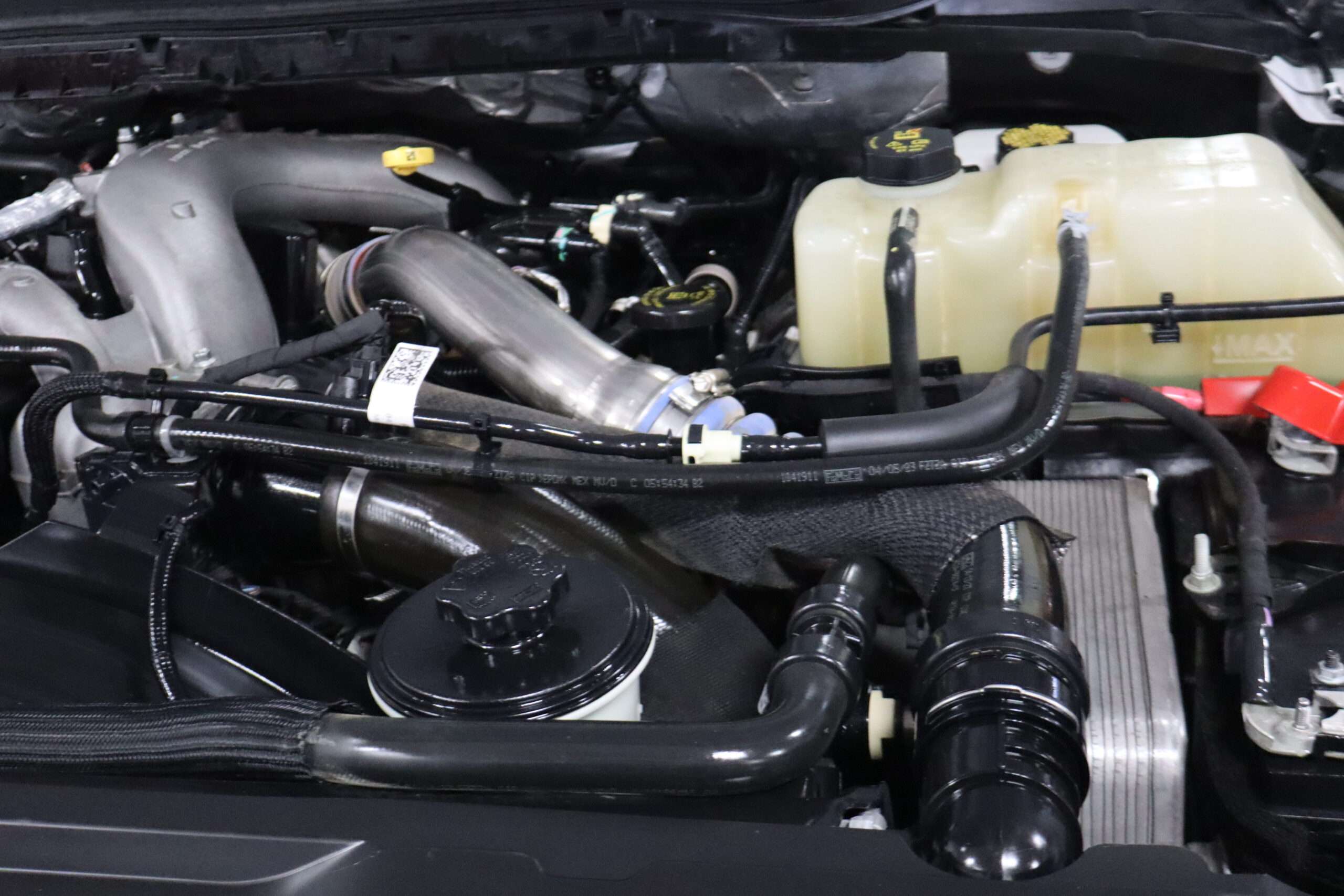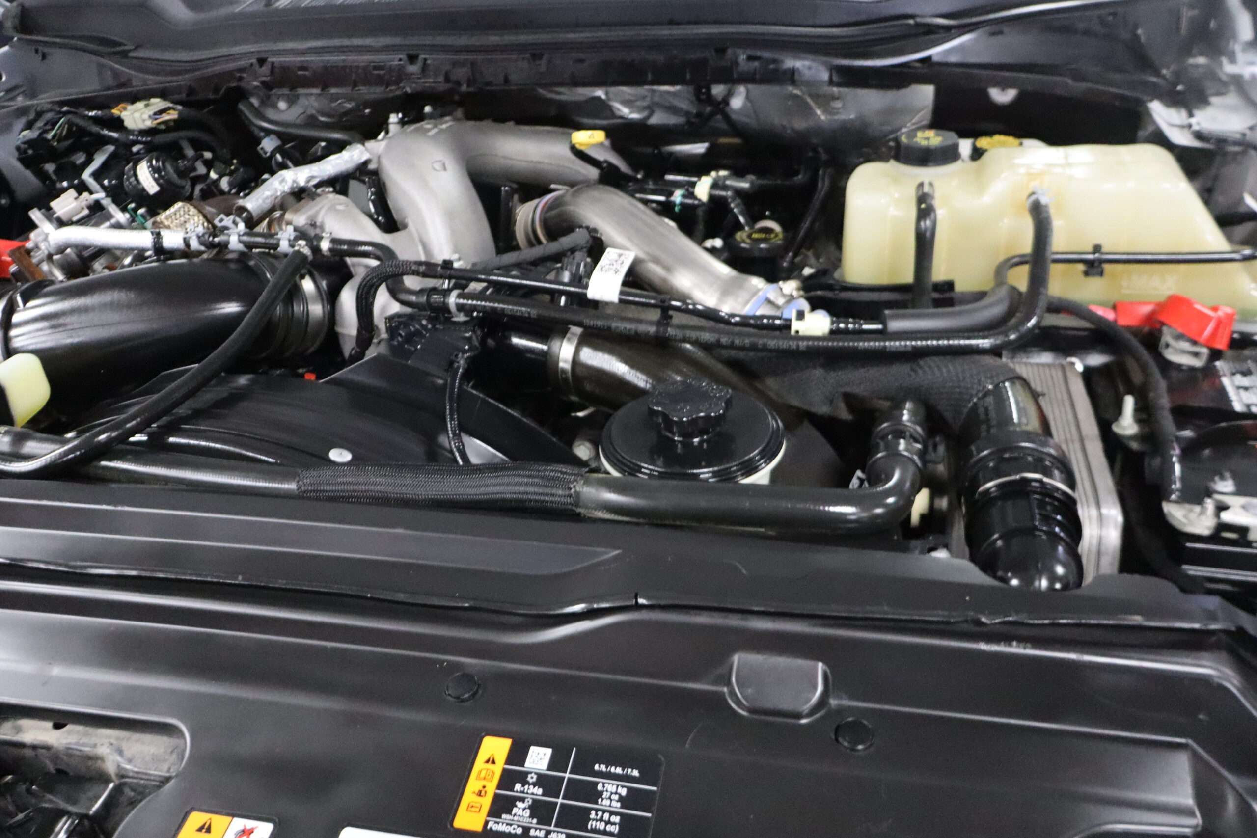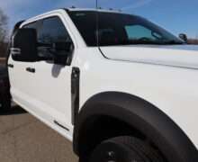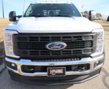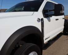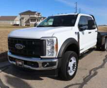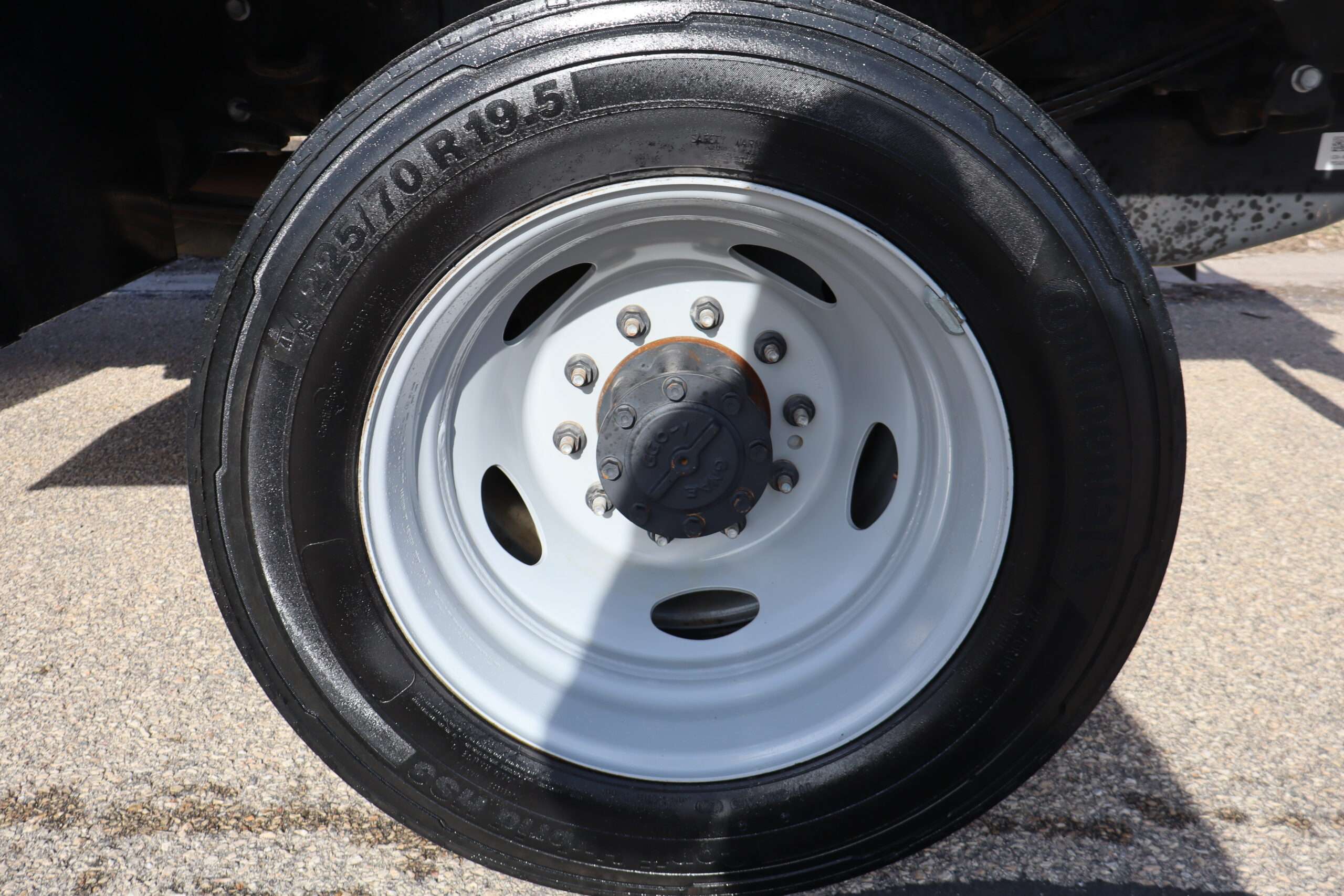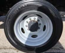 Motor is a 6.7L Power Stroke Turbo Diesel, 10-speed automatic transmission with optional tap shift, exhaust brake, push button 4WD,  4.10 axle ratio, 18,000#GVW, 19.5″ Factory Gray Steel wheels with 225/70R19.5 Continental Load Range G tires.