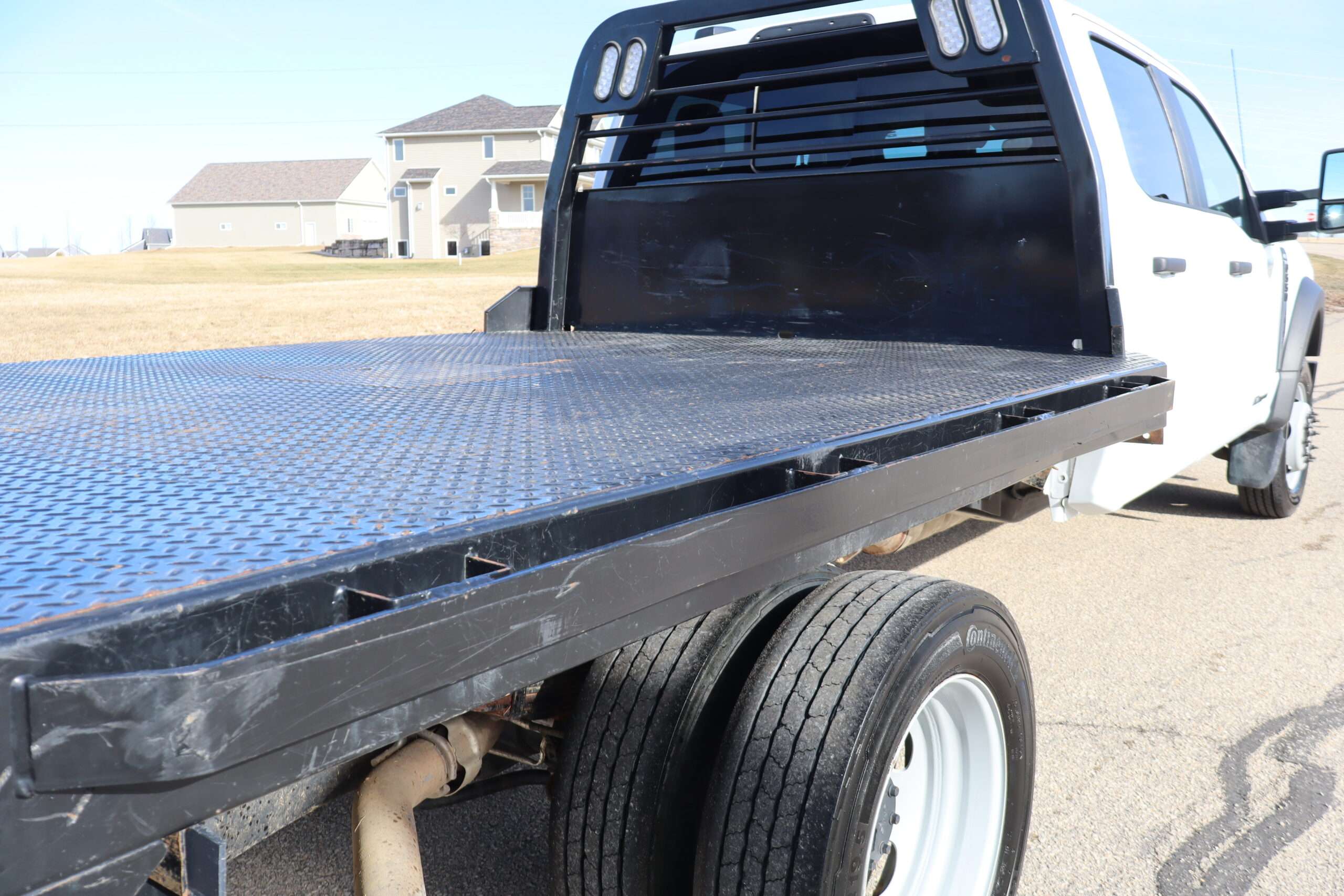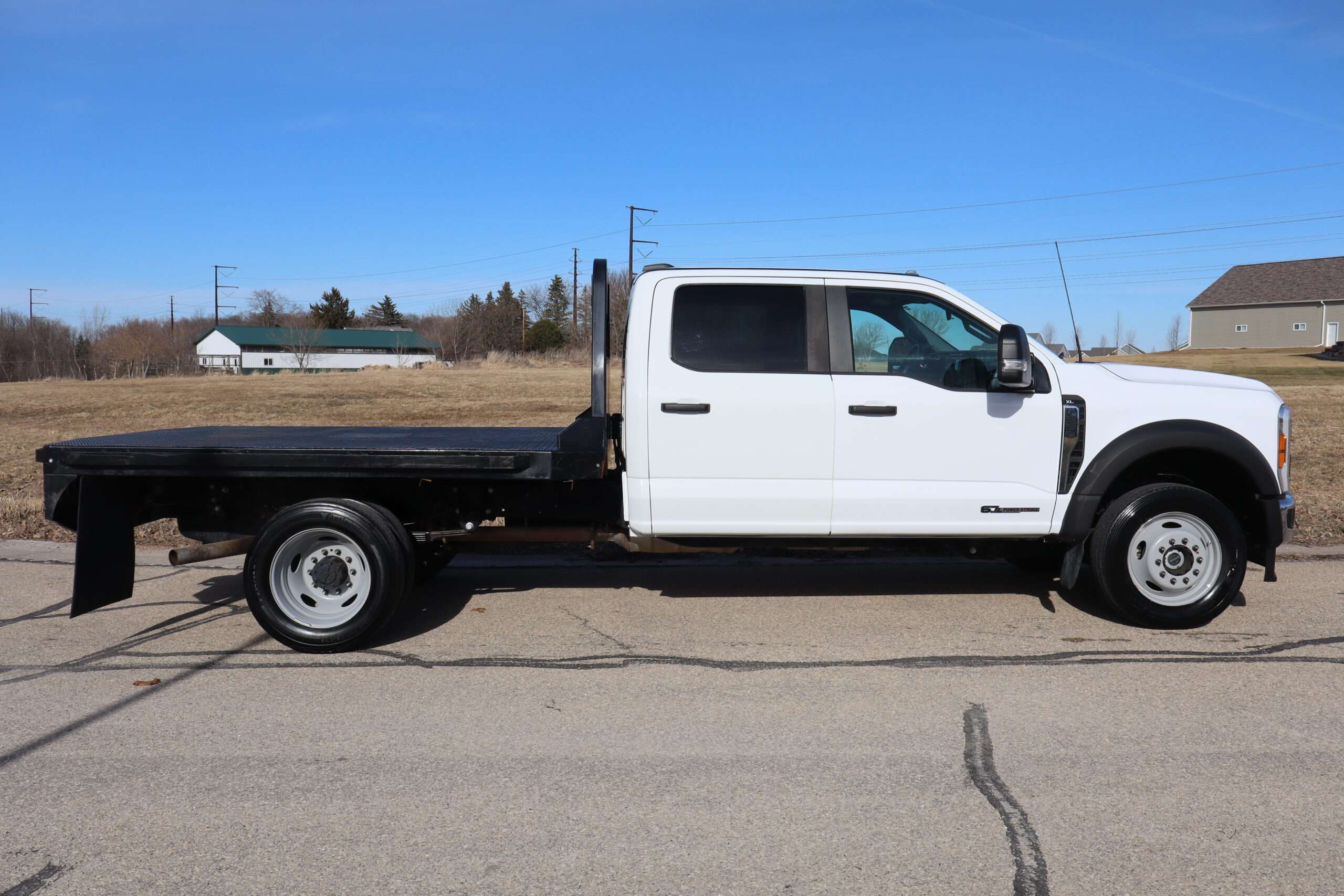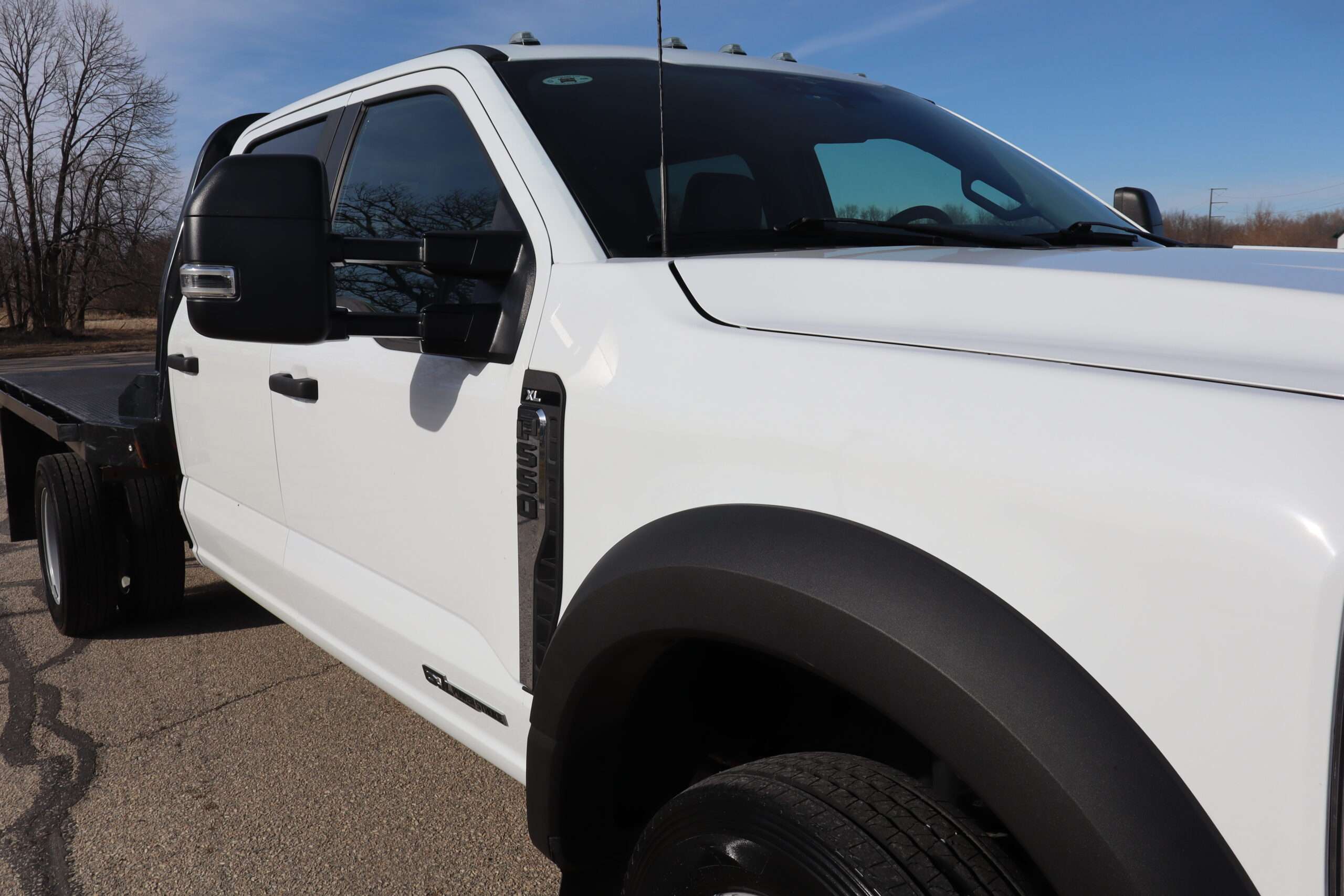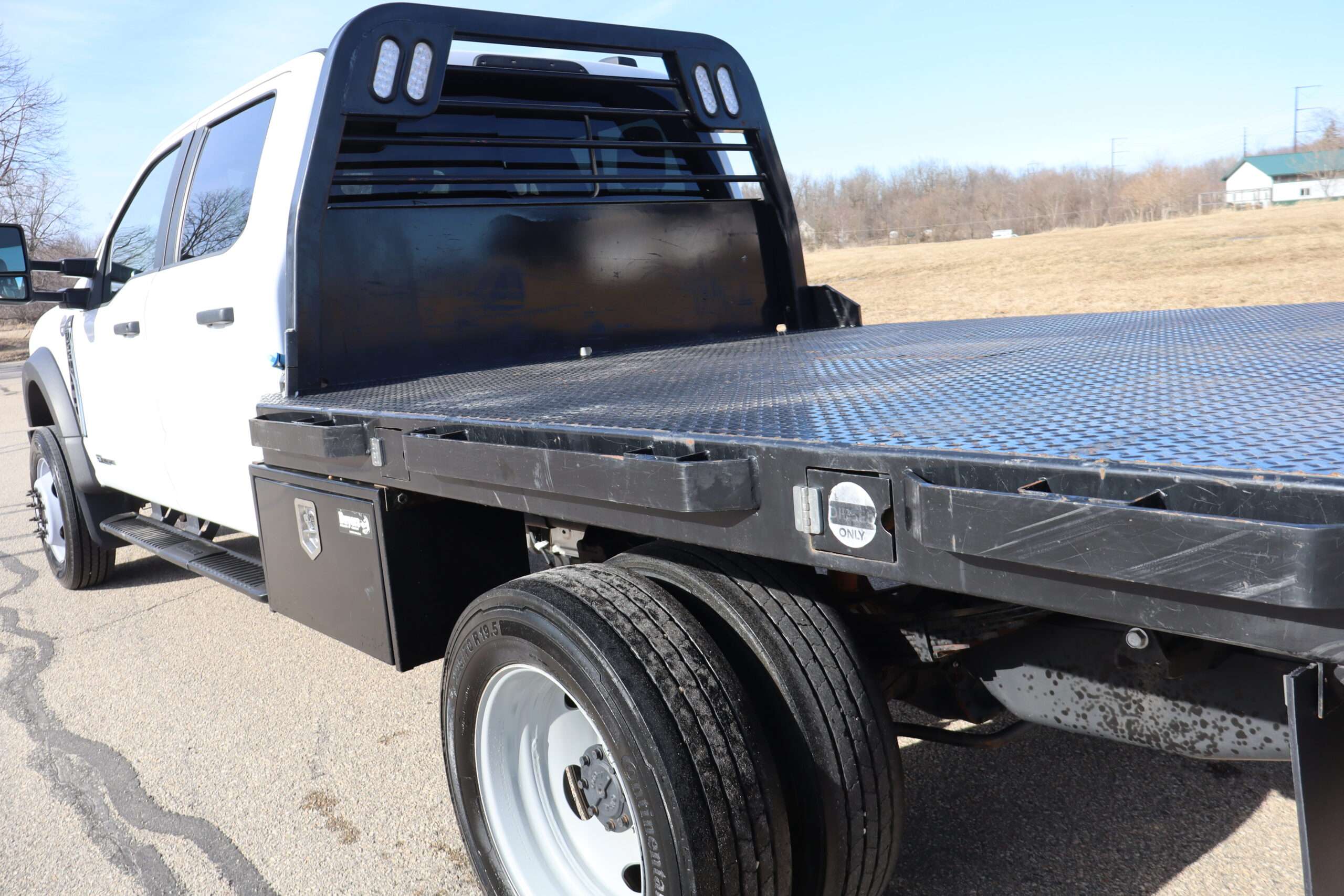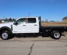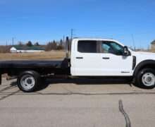 2023 FORD F550 SUPER DUTY CREW CAB, DRW, XL, CHASSIE CAB, 18,000# GVW, 6.7L TURBO DIESEL, 10-SPEED AUTOMATIC TRANSMISSION, REMOTE START, BACK UP CAMERA, 4WD, 179″ WHEEL BASE, 9′ CENTRY FLAT BED, CONTINENTAL TIRES, WELL MAINTAINED RUST FREE SOUTHERN 2 OWNER TRUCK WITH 35,663 MILES, THIS TRUCK DOES HAVE A BRANDED TITLE DUE TO MINOR DAMAGE. ASK FOR PICTURES.