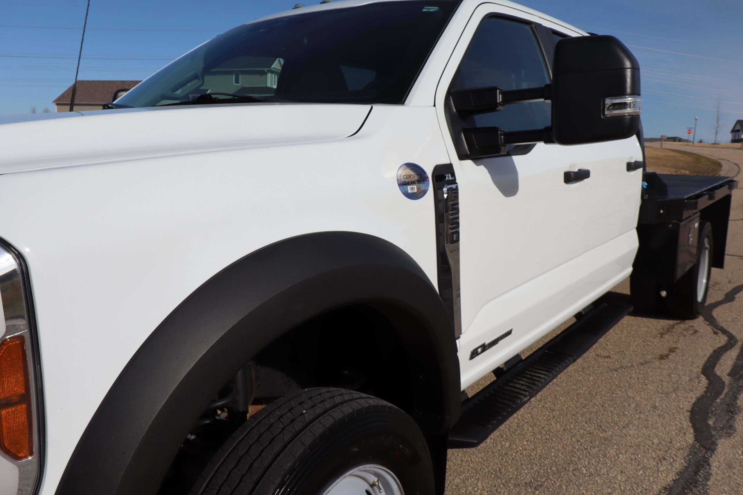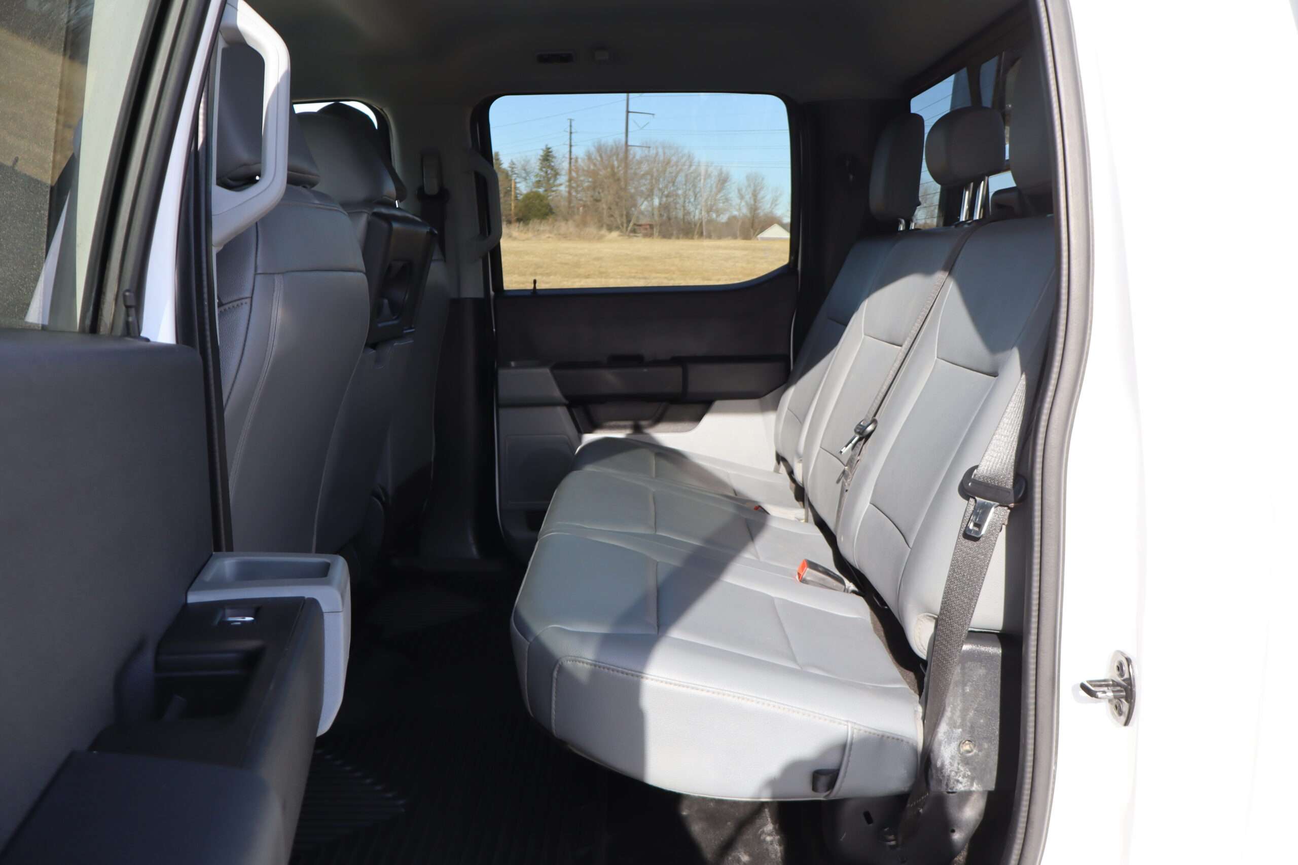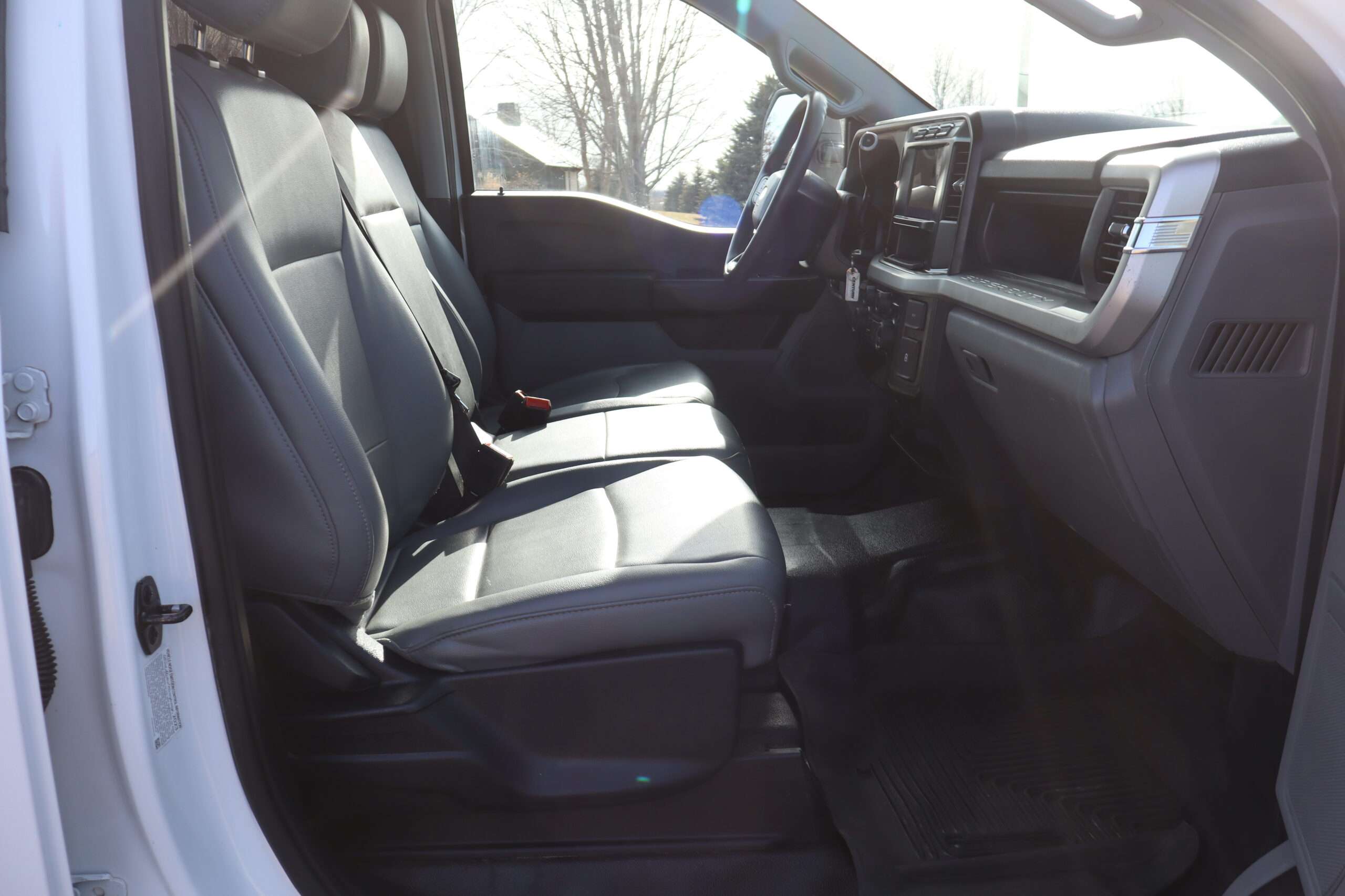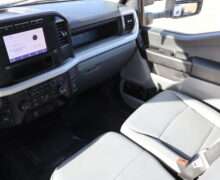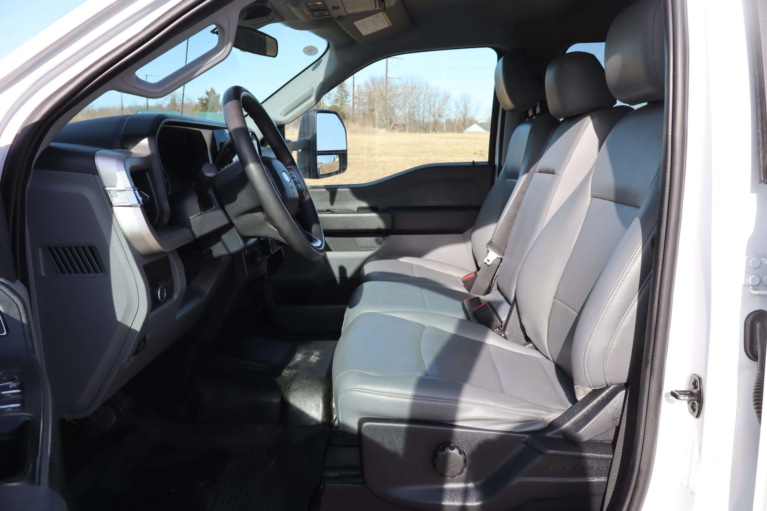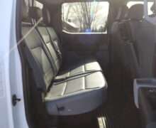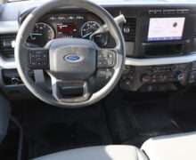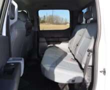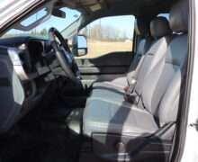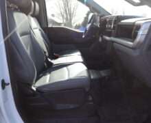 Exterior is Oxford White, Interior is Medium Earth Dark Slate heavy duty vinyl, 40/20/40 seats with folding center console and storage compartments, 60/40 rear folding bench, tilt and telescoping wheel, power windows and power door locks, cruise control, air conditioning, rear window defrost, SYNC 4 with 8″ touch screen, AM/FM stereo, Apple Link, driver’s information center, temperature/mileage display in dash, traction control, hill start assist, up-fitter switches, side air bags, power/heated tow mirrors with manual telescoping and marker lights, dual power point, 12v outlet, automatic headlights, cab clearance lights, keyless entry, remote start, day/night rear view mirror, black platform step boards, dark tinted glass, rear parking power sliding window, tow package with receiver and trailer wiring and factory electronic brake controller.