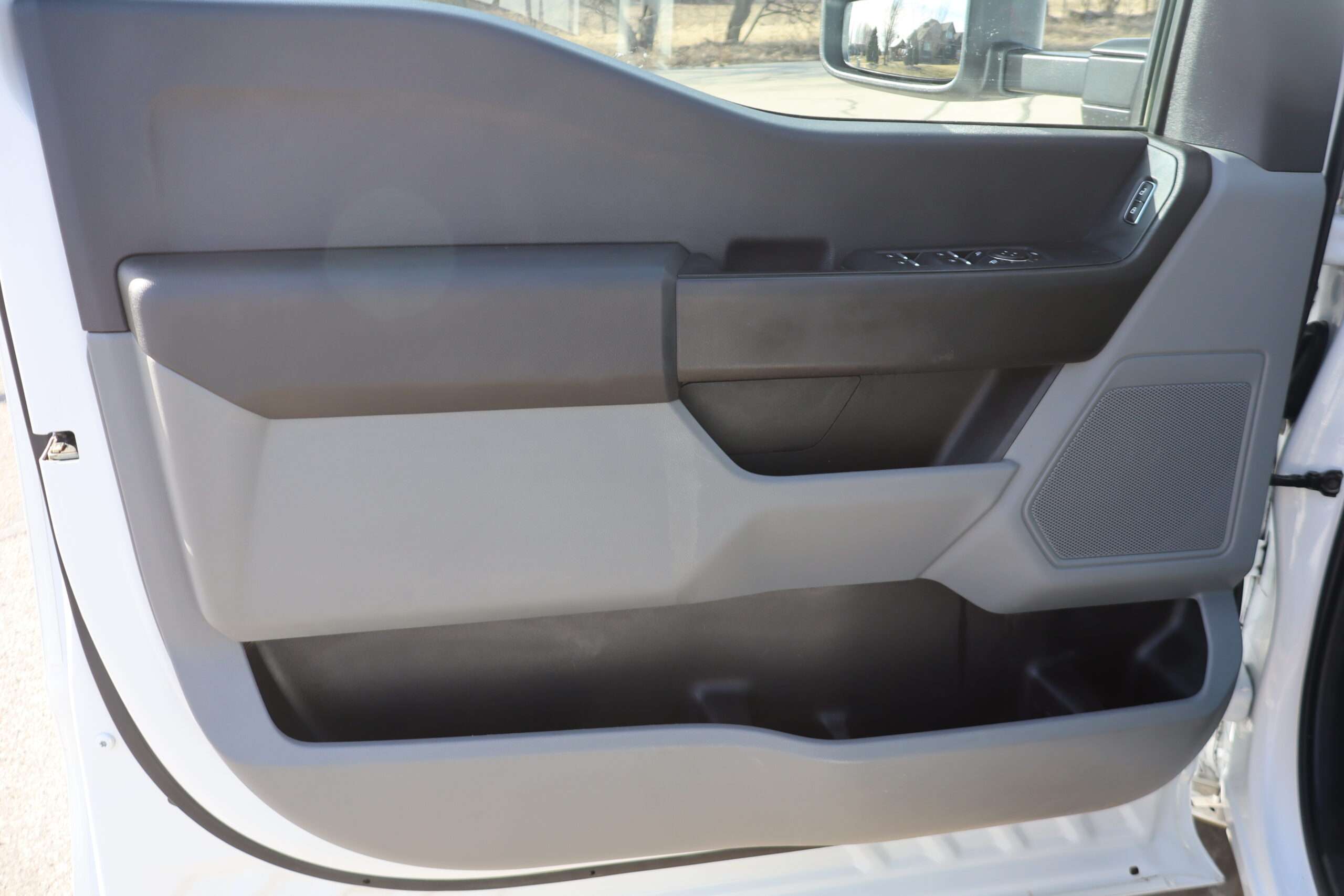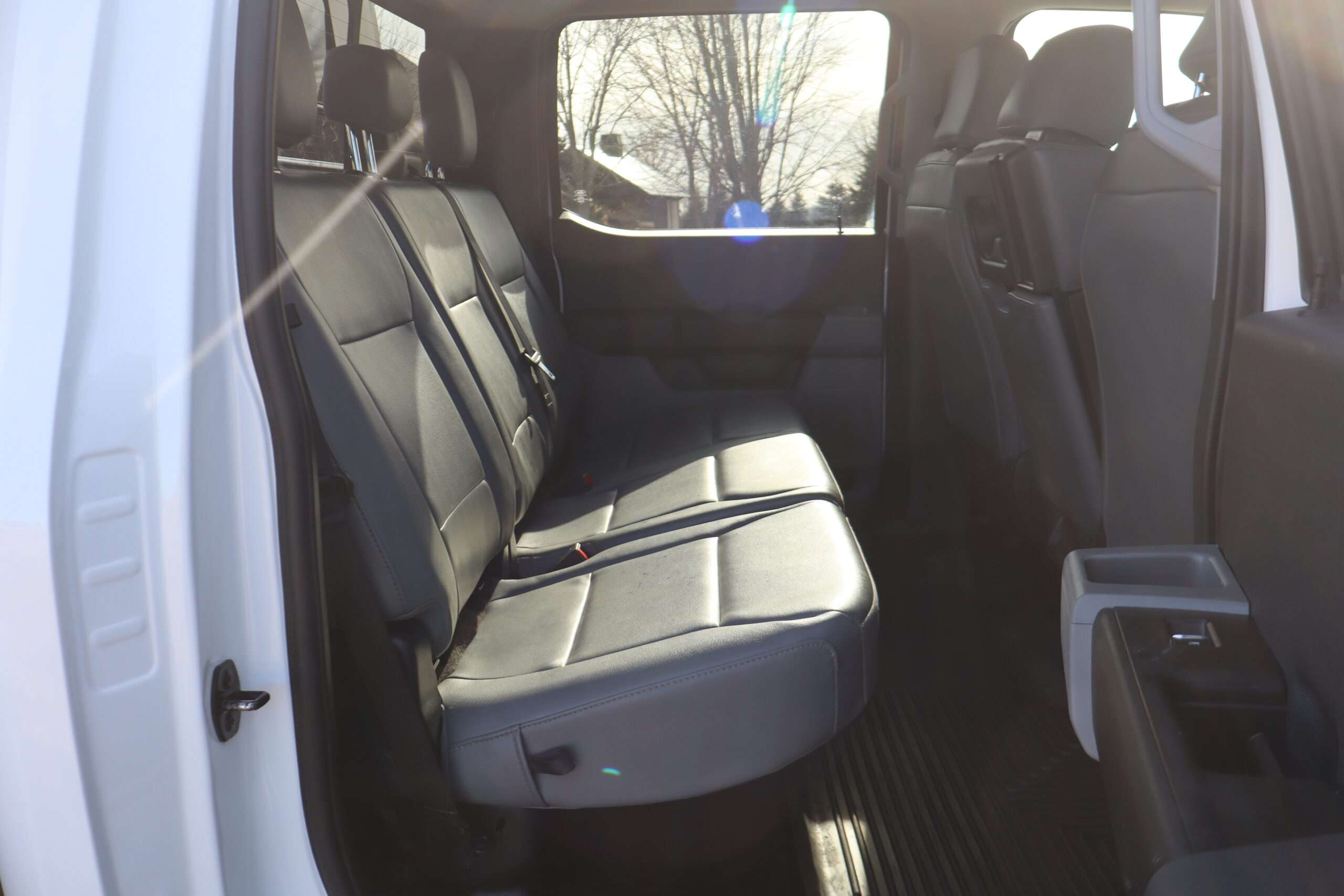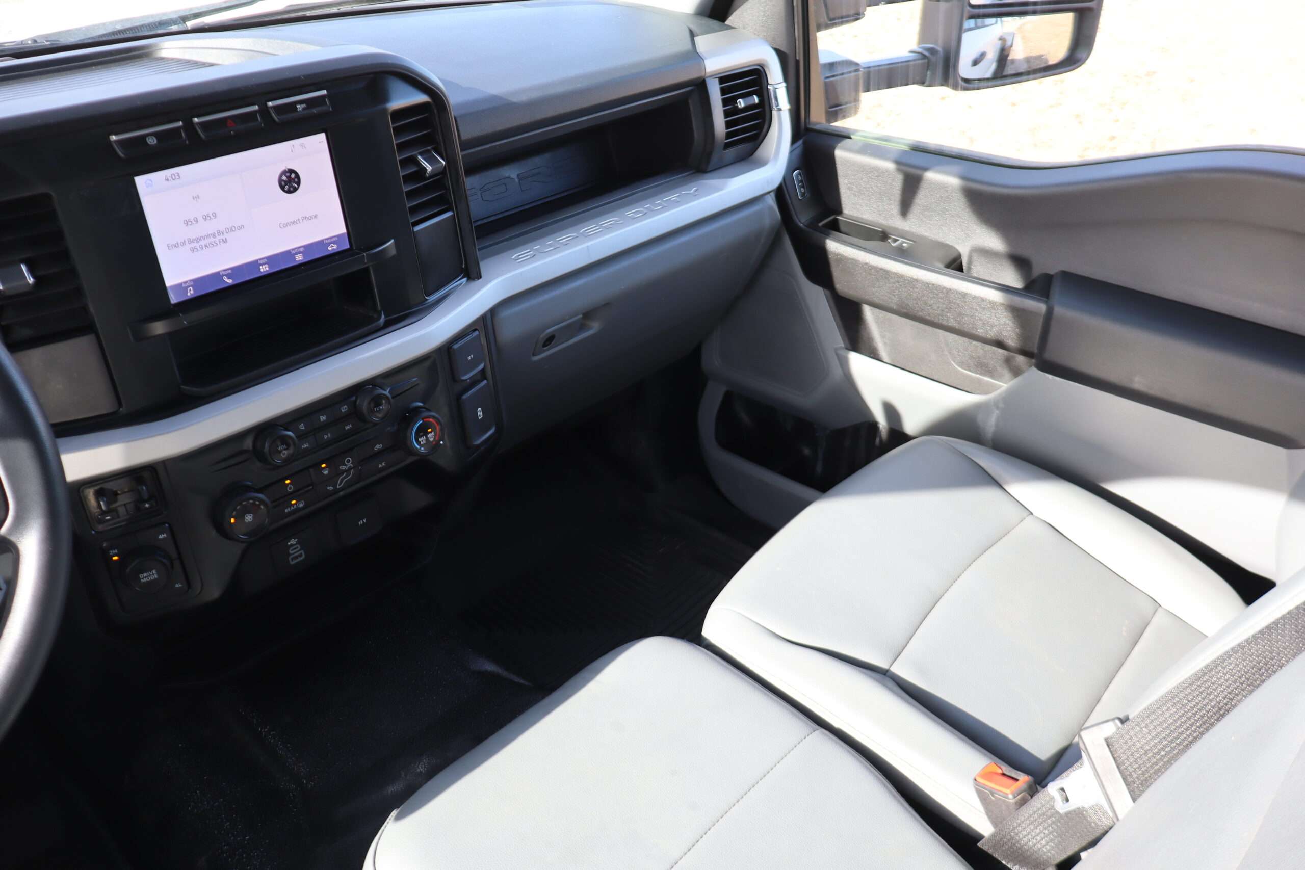 Exterior is Oxford White, Interior is Medium Earth Dark Slate heavy duty vinyl, 40/20/40 seats with folding center console and storage compartments, 60/40 rear folding bench, tilt and telescoping wheel, power windows and power door locks, cruise control, air conditioning, rear window defrost, SYNC 4 with 8″ touch screen, AM/FM stereo, Apple Link, driver’s information center, temperature/mileage display in dash, traction control, hill start assist, up-fitter switches, side air bags, power/heated tow mirrors with manual telescoping and marker lights, dual power point, 12v outlet, automatic headlights, cab clearance lights, keyless entry, remote start, day/night rear view mirror, black platform step boards, dark tinted glass, rear parking power sliding window, tow package with receiver and trailer wiring and factory electronic brake controller.