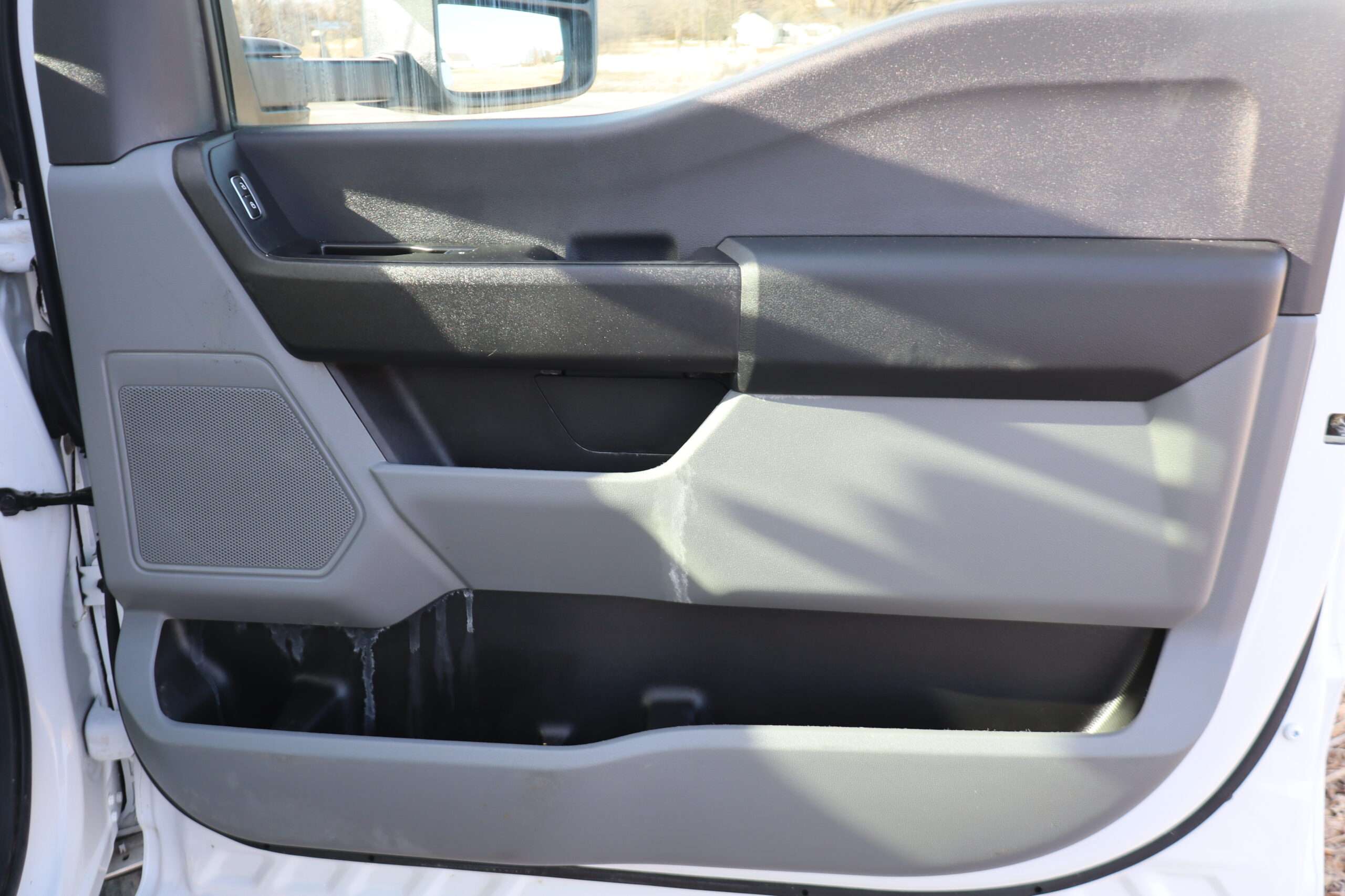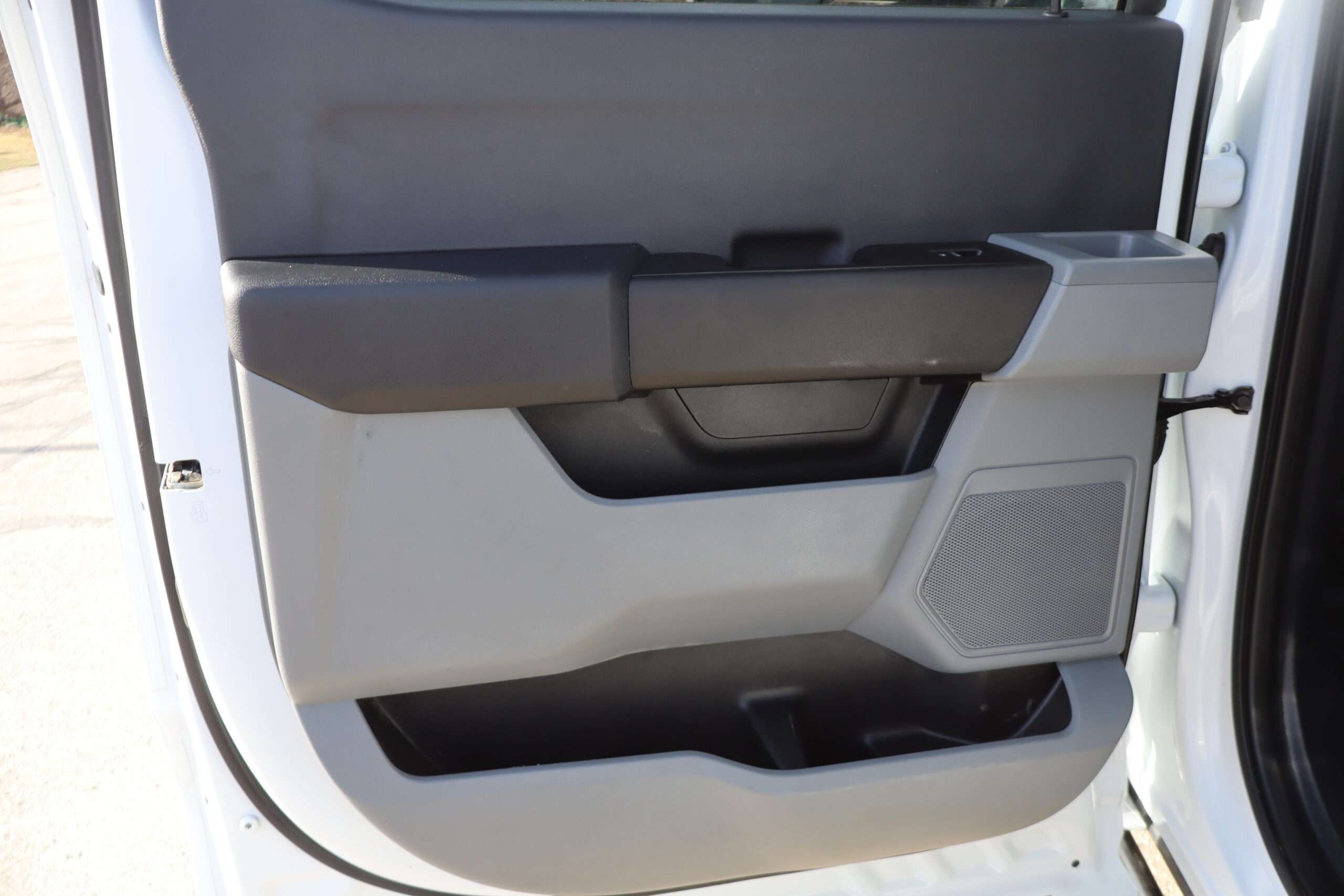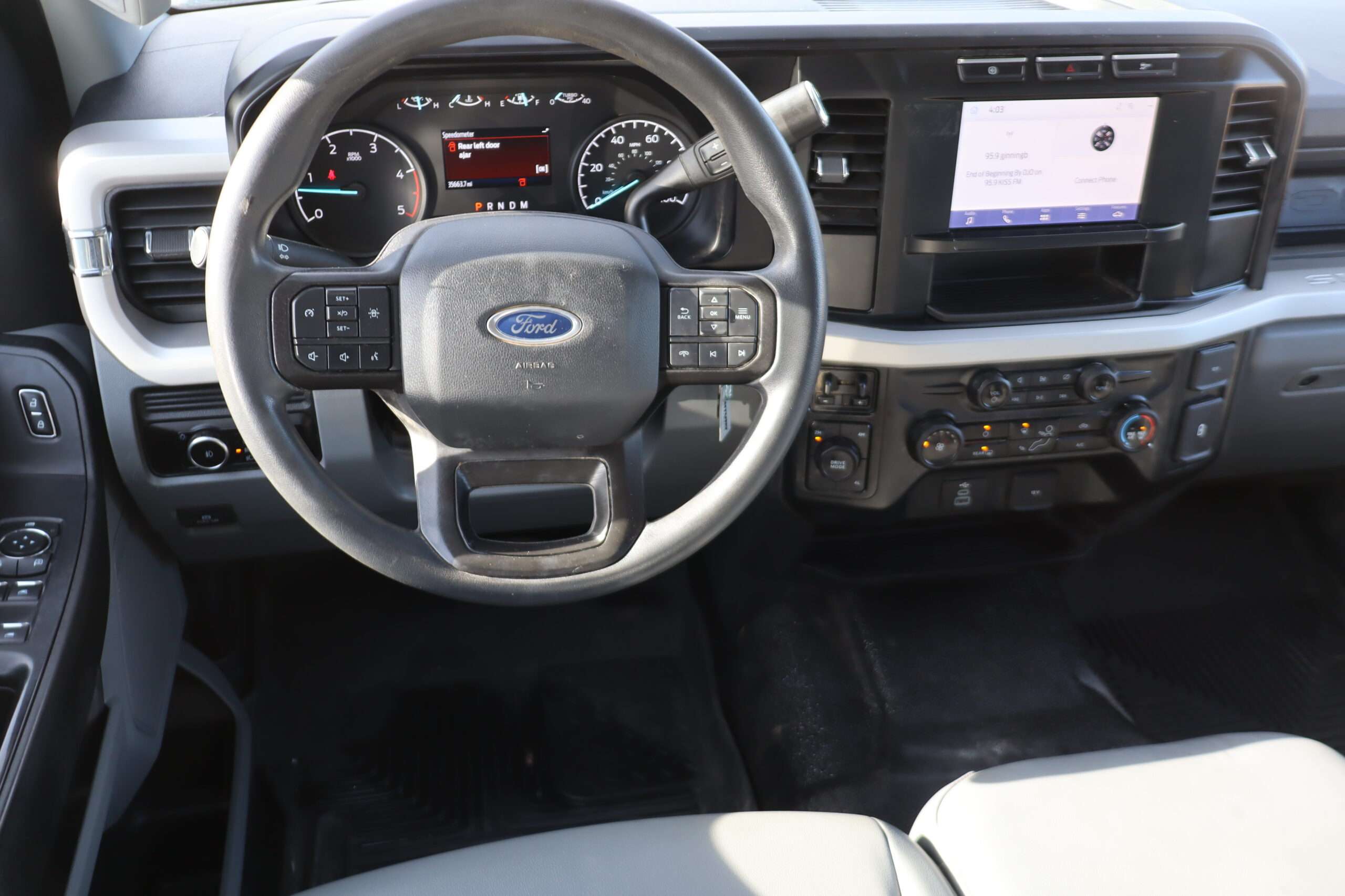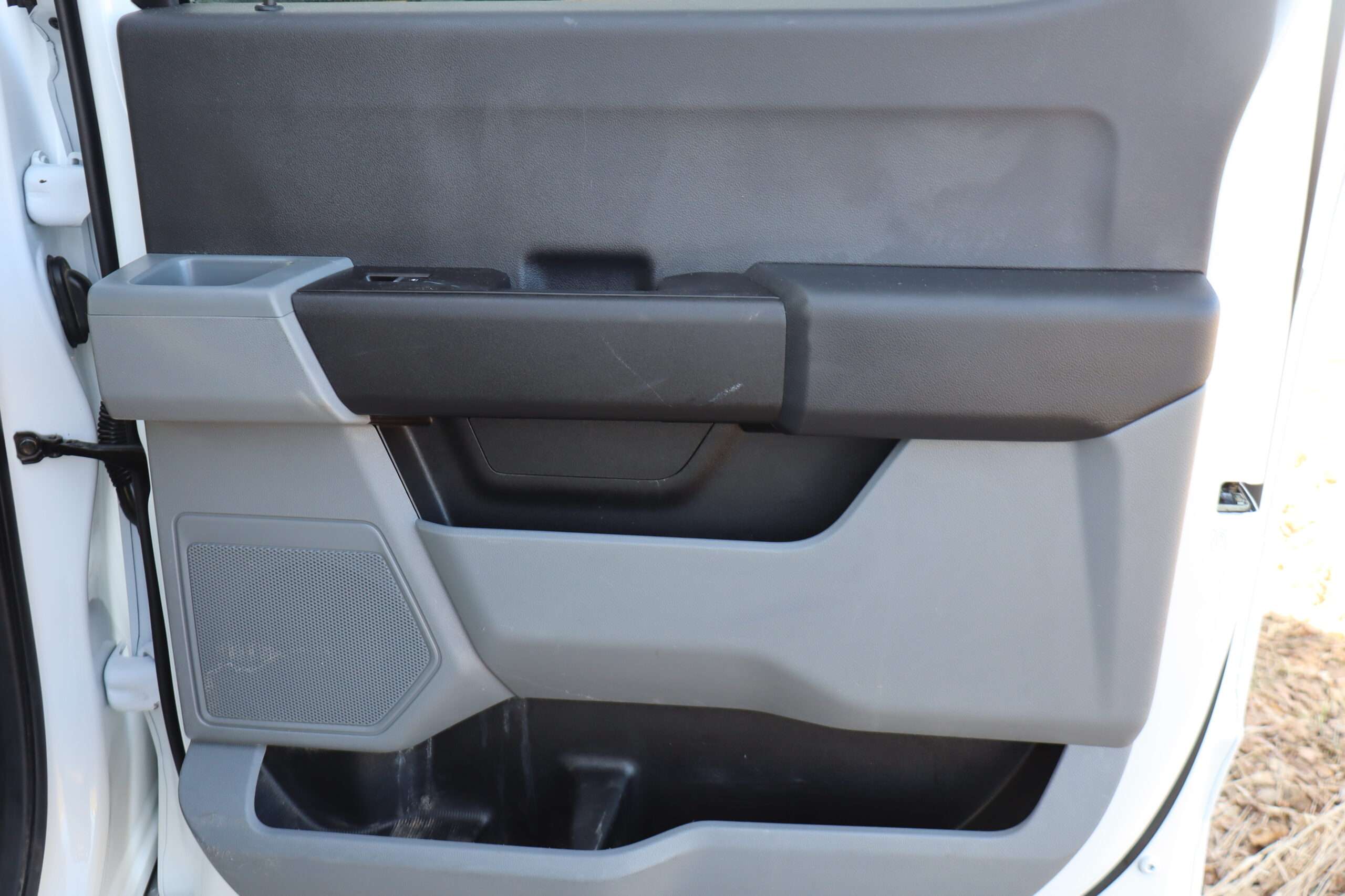 Exterior is Oxford White, Interior is Medium Earth Dark Slate heavy duty vinyl, 40/20/40 seats with folding center console and storage compartments, 60/40 rear folding bench, tilt and telescoping wheel, power windows and power door locks, cruise control, air conditioning, rear window defrost, SYNC 4 with 8″ touch screen, AM/FM stereo, Apple Link, driver’s information center, temperature/mileage display in dash, traction control, hill start assist, up-fitter switches, side air bags, power/heated tow mirrors with manual telescoping and marker lights, dual power point, 12v outlet, automatic headlights, cab clearance lights, keyless entry, remote start, day/night rear view mirror, black platform step boards, dark tinted glass, rear parking power sliding window, tow package with receiver and trailer wiring and factory electronic brake controller.