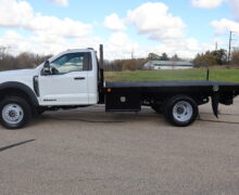 1FDFF6LT8PDA051552023 FORD F600 REG CAB, XL, CAB CHASSIE, DRW, 6.7L POWER STROKE DIESEL, AUTOMATIC, 4WD, 22,000 GVW, 169″ WB, POWER PACKAGE, TRAILER TOW PACKAGE, 12′ FLAT BED WITH TOOL BOXES, HANKOOK TIRES, LIKE NEW 1 OWNER TRUCK WITH ONLY 2,468 MILES AND A CAR FAX WITH REMAINING FACTORY 3YR/36,000 MILE AND 5YR/60,000 MILE POWER TRAIN WARRANTY.