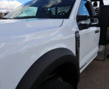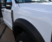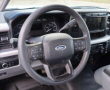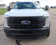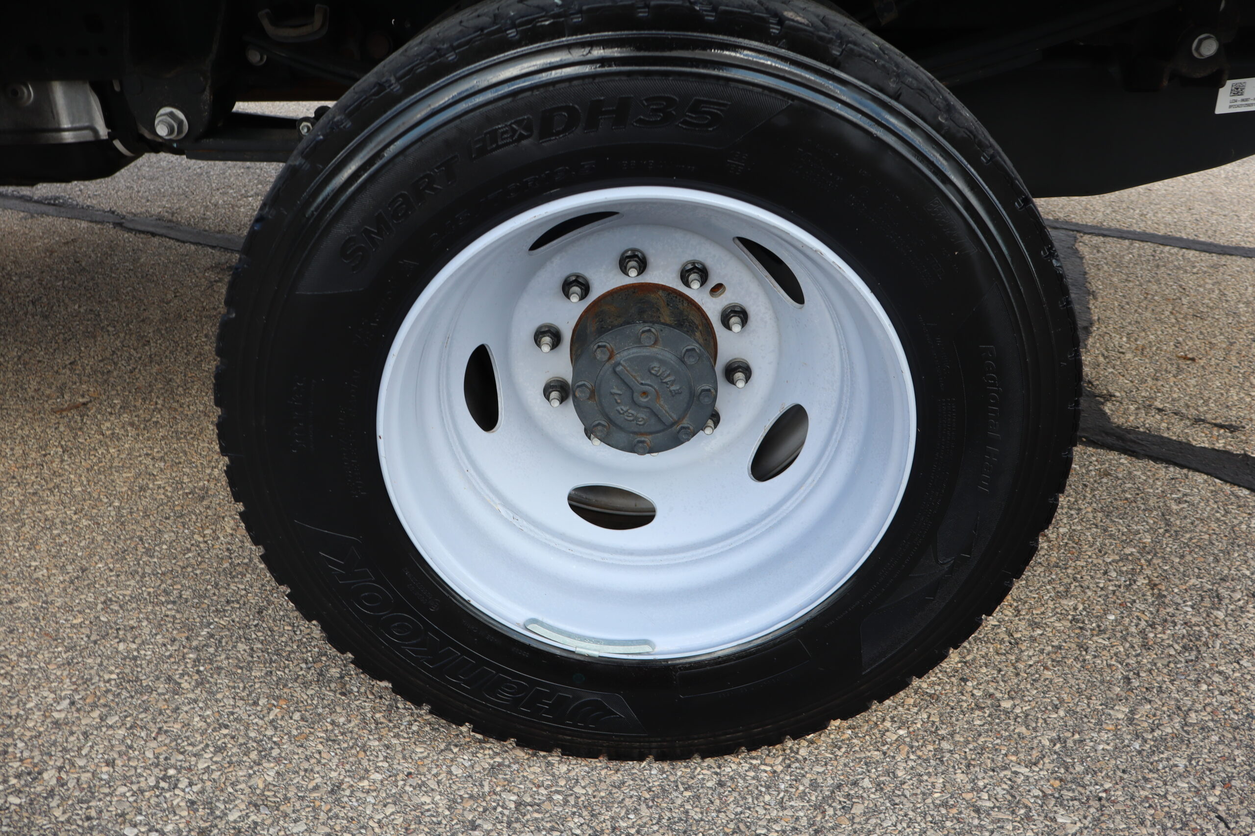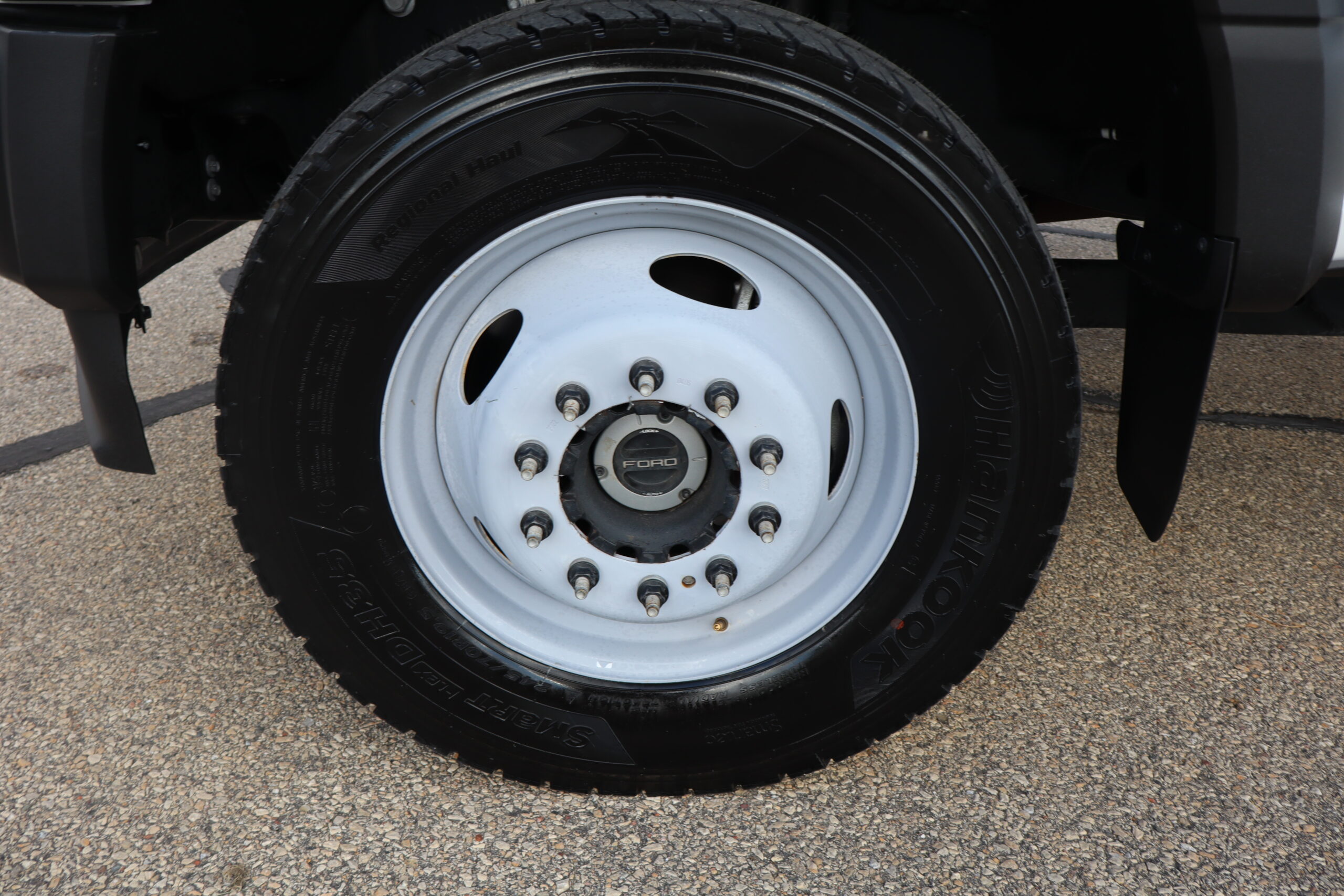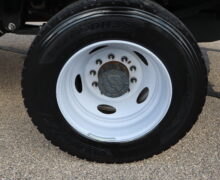 Motor is a 6.7L Power Stroke Turbo Diesel, 10-speed automatic transmission, exhaust brake, turn dial shift on the fly 4WD, 4.30 axle ratio, 19.5″ Factory Gray Steel wheels with LT245/70R19.5 Hankook Smart Flex DH35 Load Range G tires.