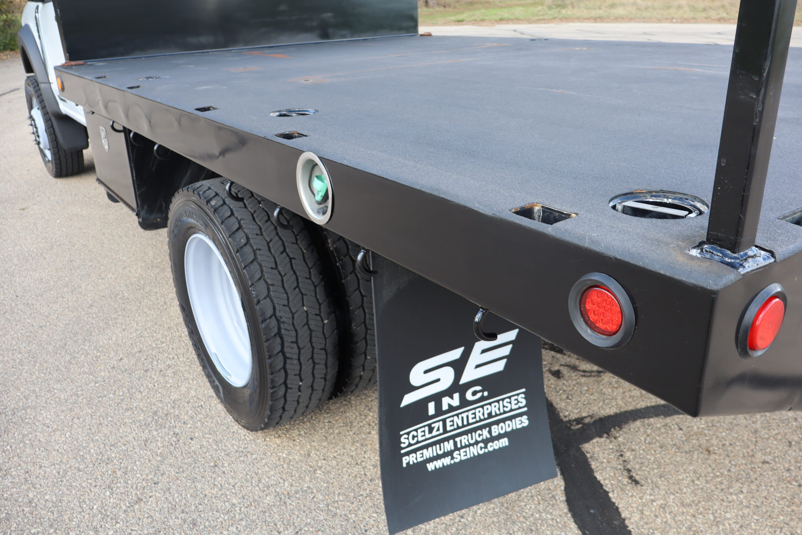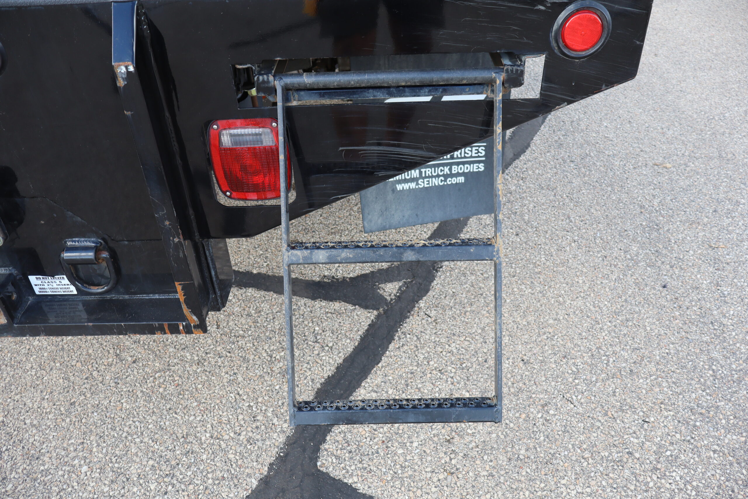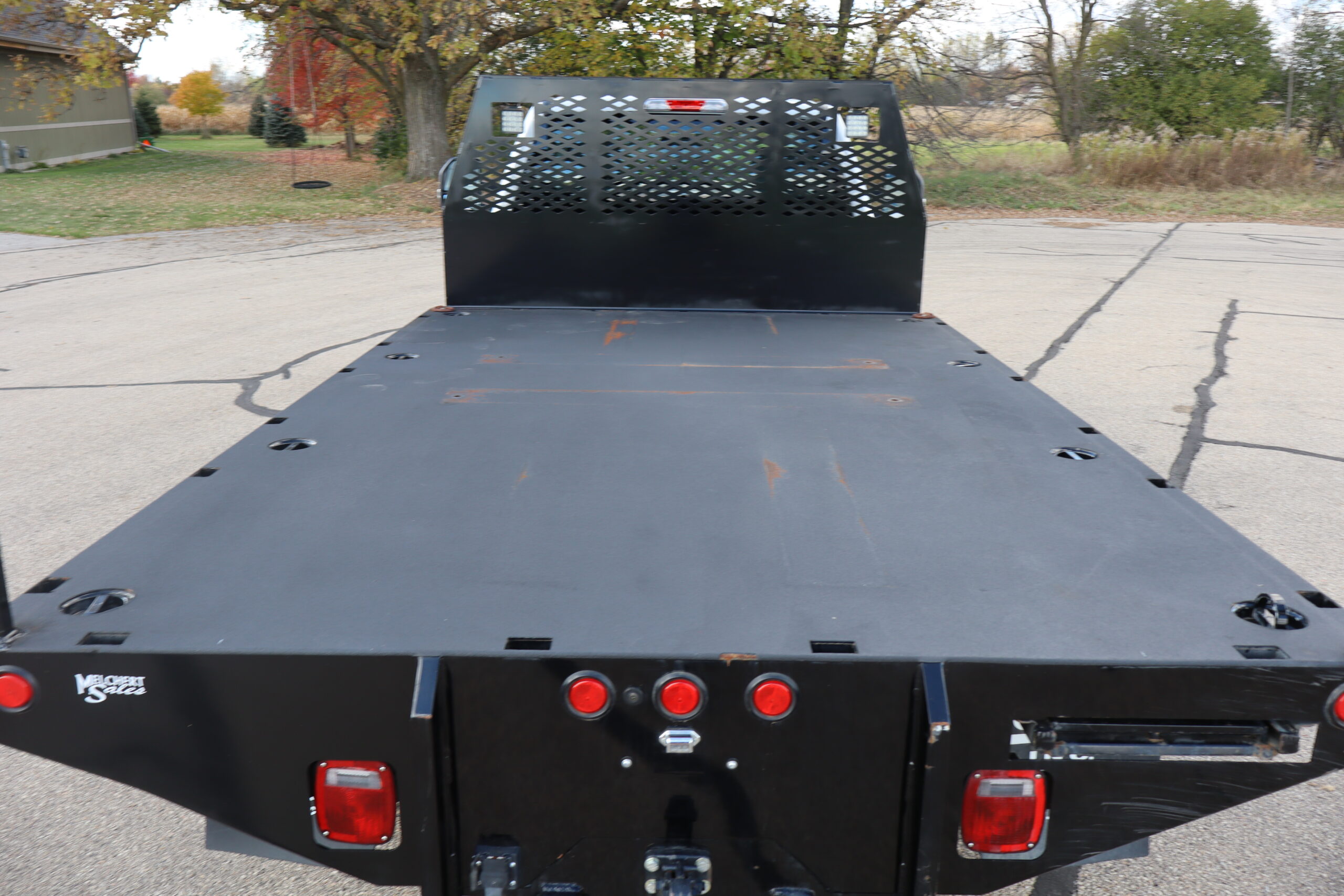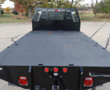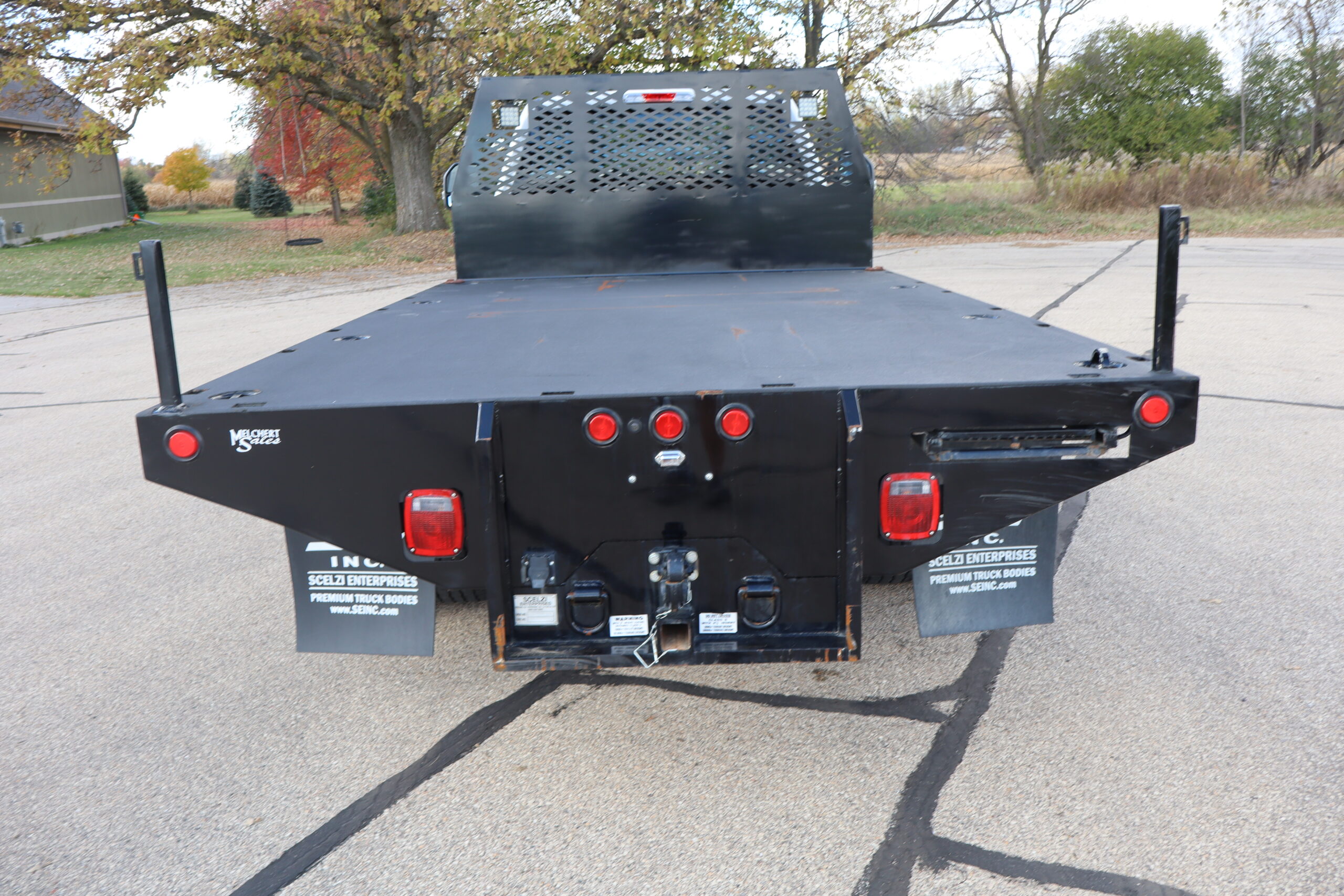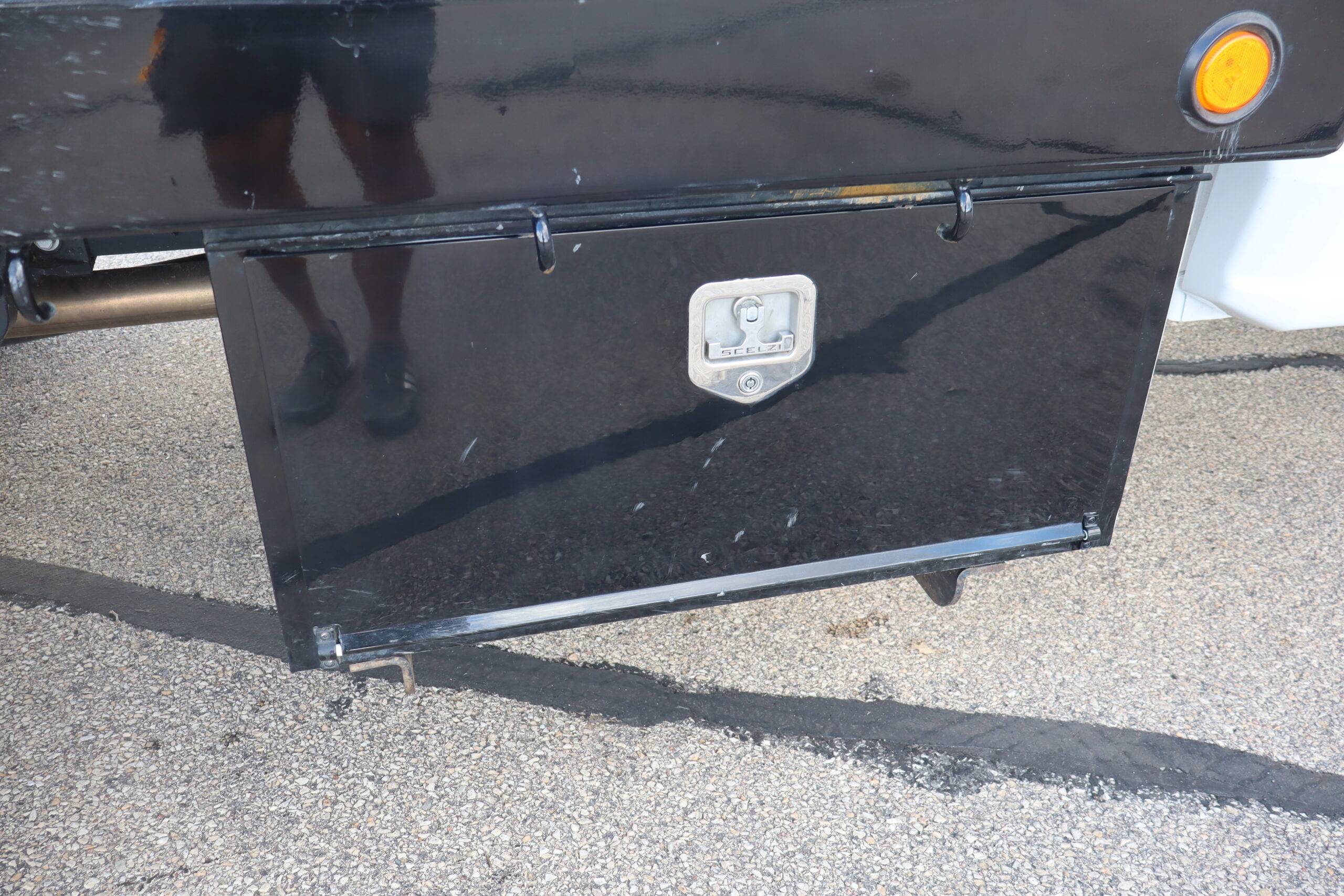 EXTRAS: Scelzi 12’x8′ Steel bed with 2 under body 3’x18″x18″ tool boxes and Pintal hitch.
