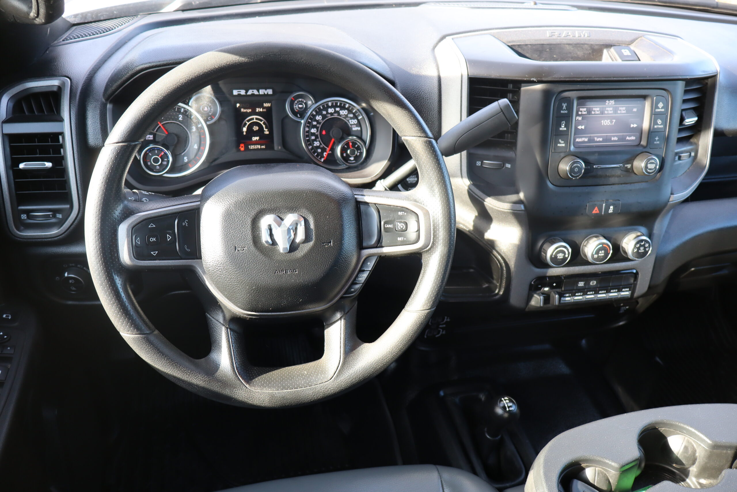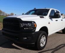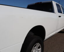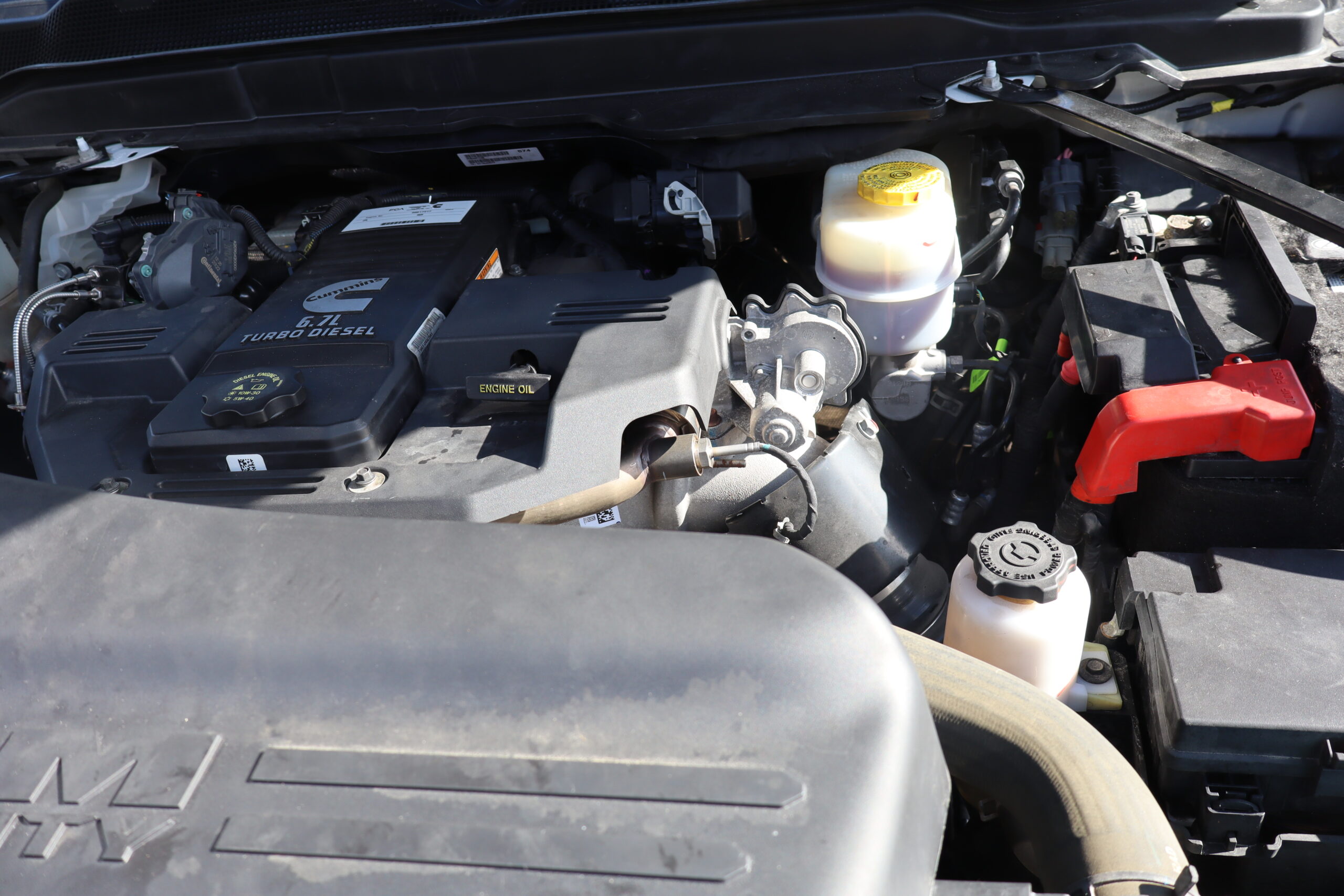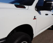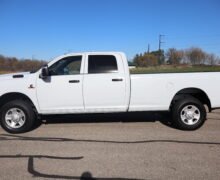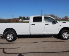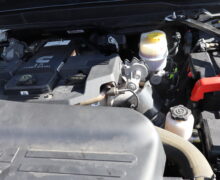 Motor is a 6.7L Cummins Turbo Diesel, 6-speed (68RFE) automatic transmission with optional tap shift, 4WD on the floor, exhaust brake, 3.73 ratio, 18″ Factory Gray Steel wheels with New LT275/70R18 Advanta Load Range E tires.