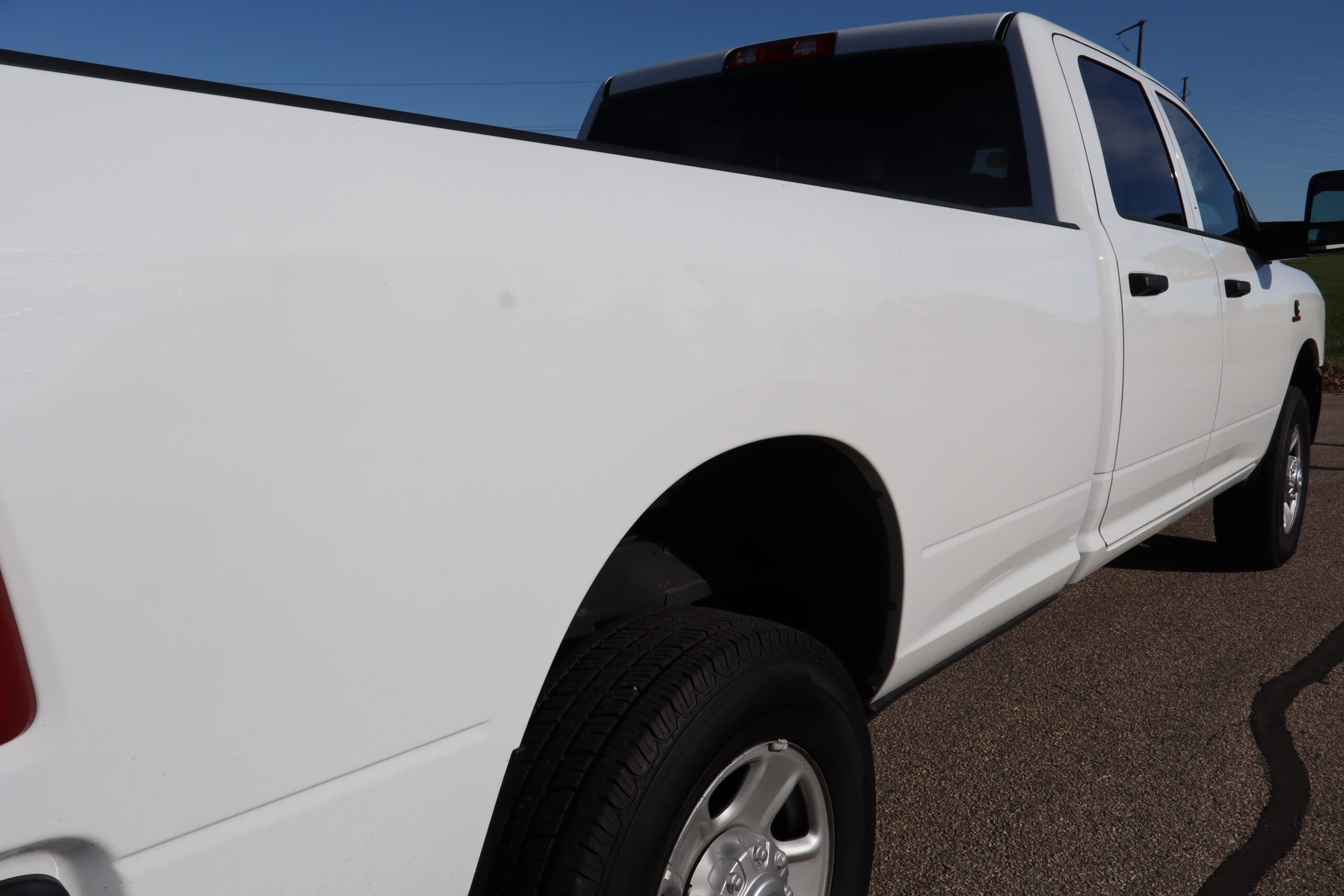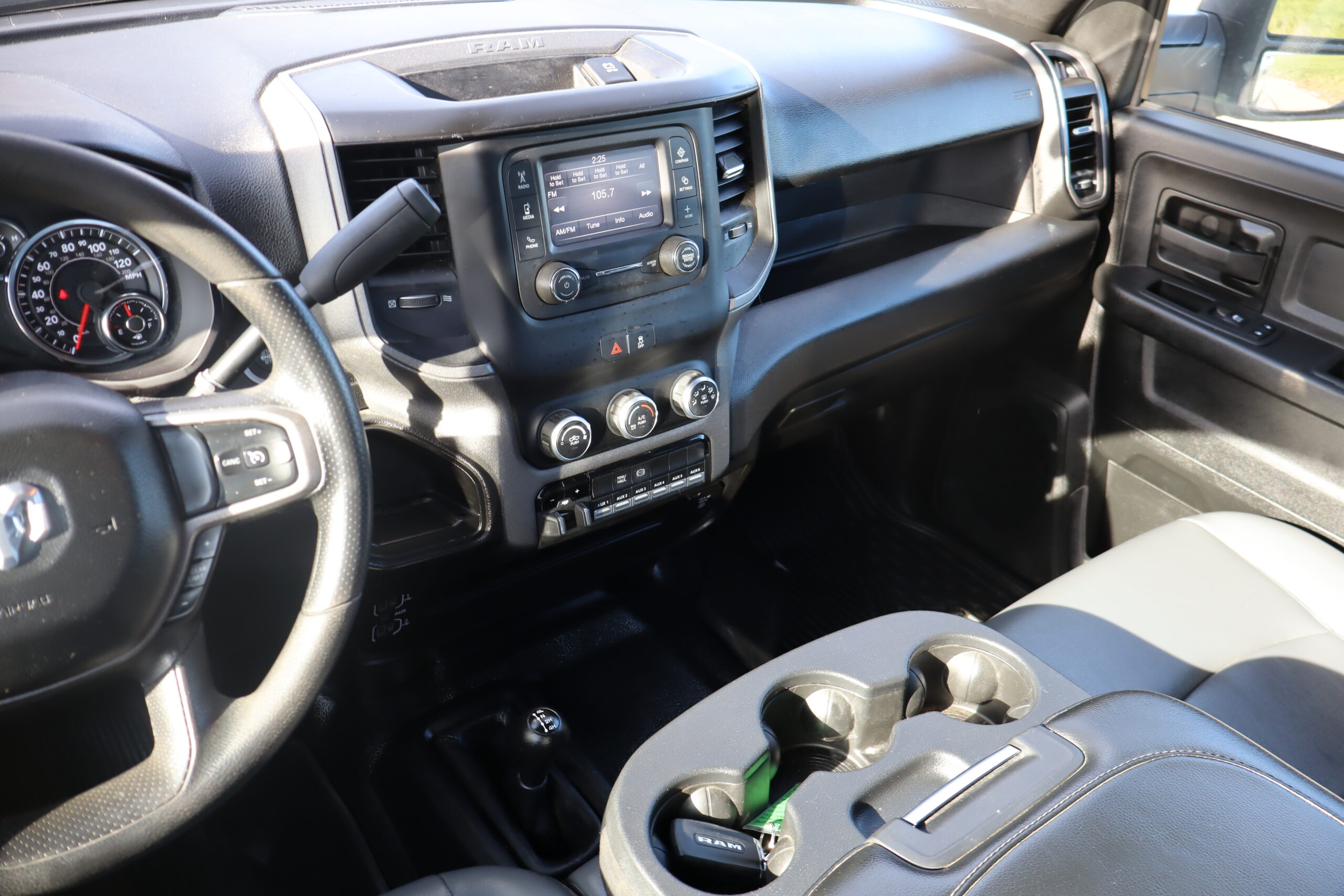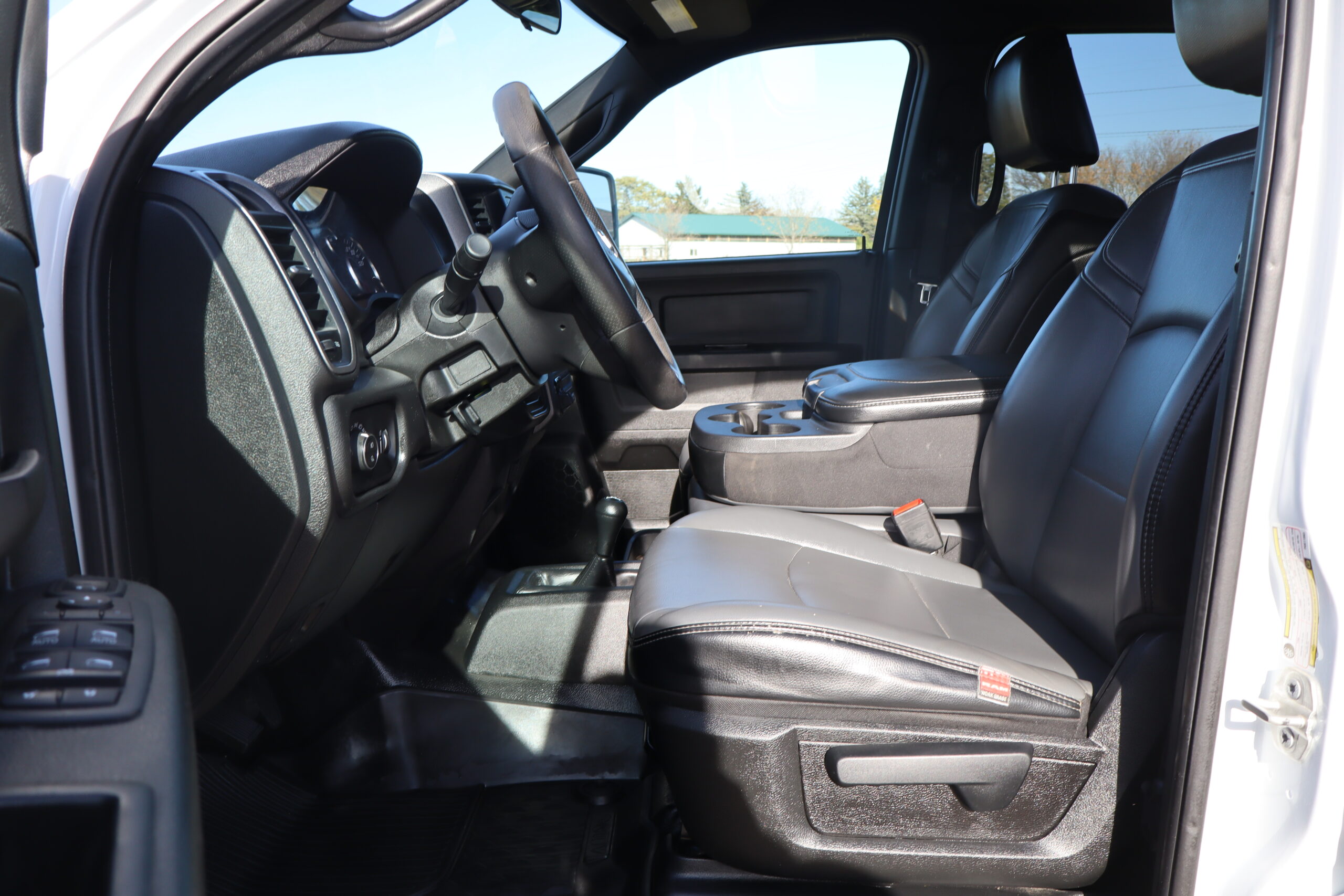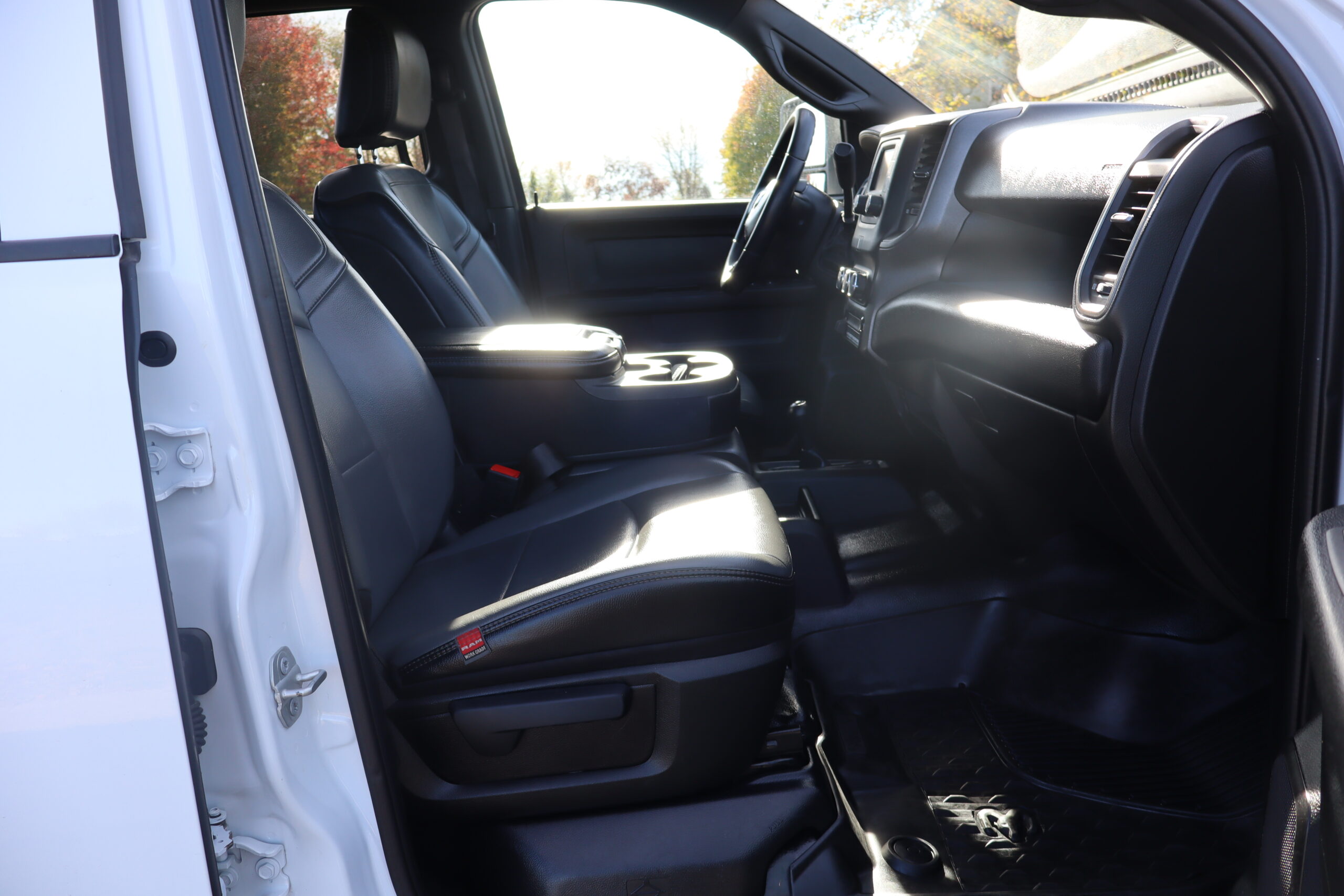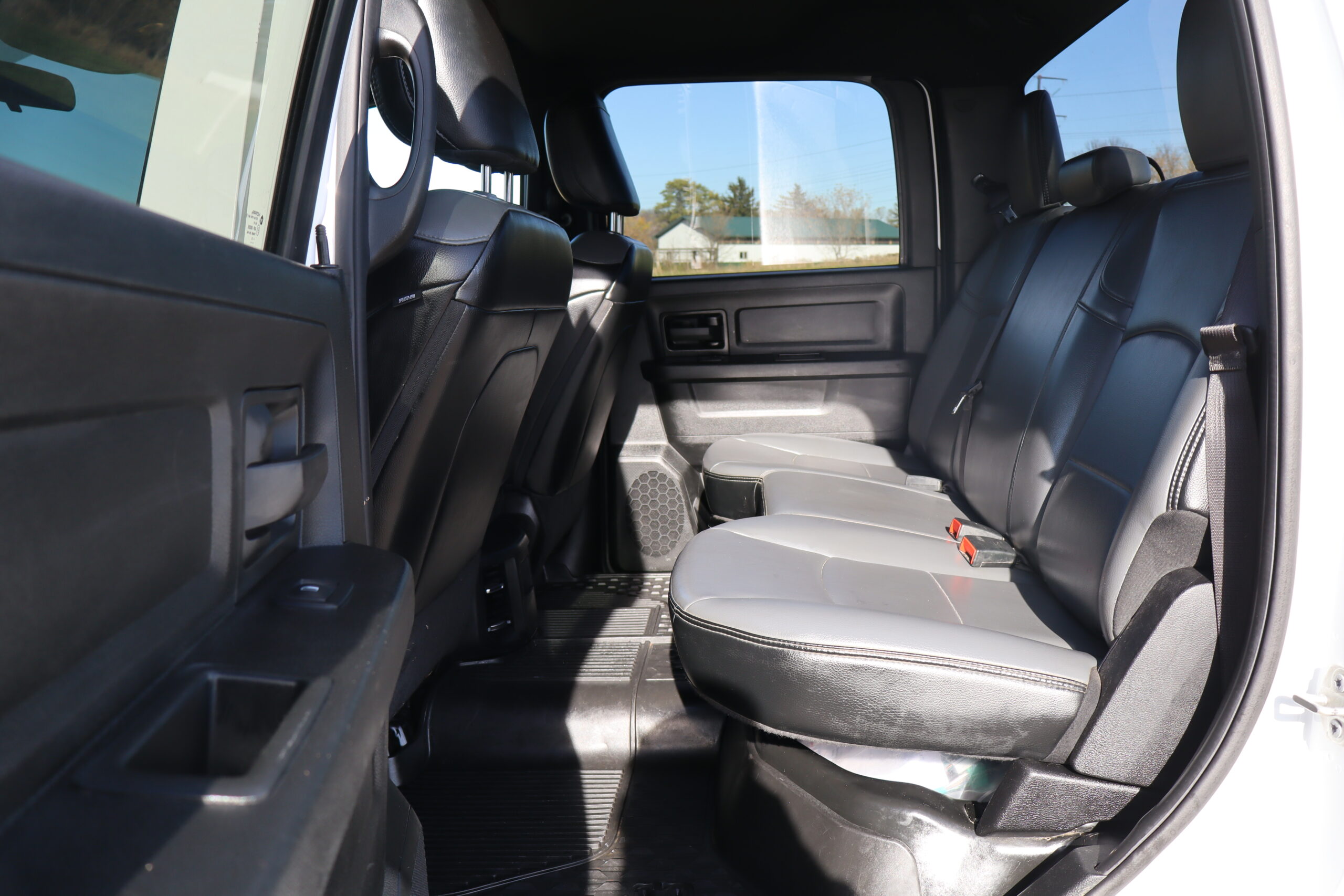 Exterior is Bright White, Interior is Diesel Gray heavy duty vinyl, 40/20/40 front seating with folding arm rest with dual storage compartment, traction control, power windows and power door locks, cruise control, air conditioning, U-connect 3 with 5″ touch screen, AM/FM stereo, XM satellite radio ready, AUX jack, back up camera, multi-function steering wheel controls, compass/temperature/mileage display in dash, day/night rear view mirror, dark rear tinted glass, remote entry, driver’s information center, under floor storage compartment, 110v outlet, heated/power folding extendable tow mirrors with indicator lights, fog lights, up-fitter switches, spray in bed liner, integrated brake controller, towing package and RV style and receiver.