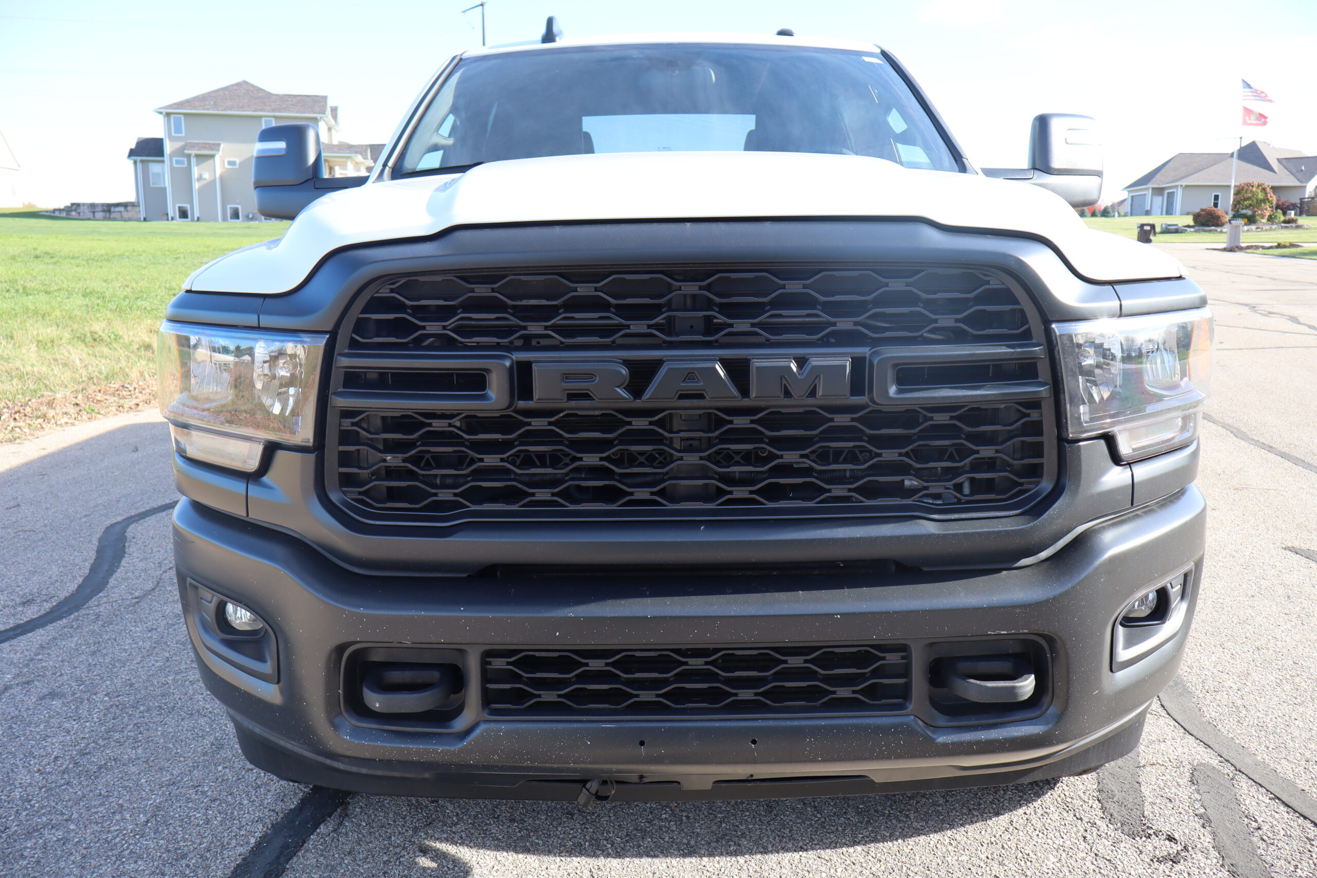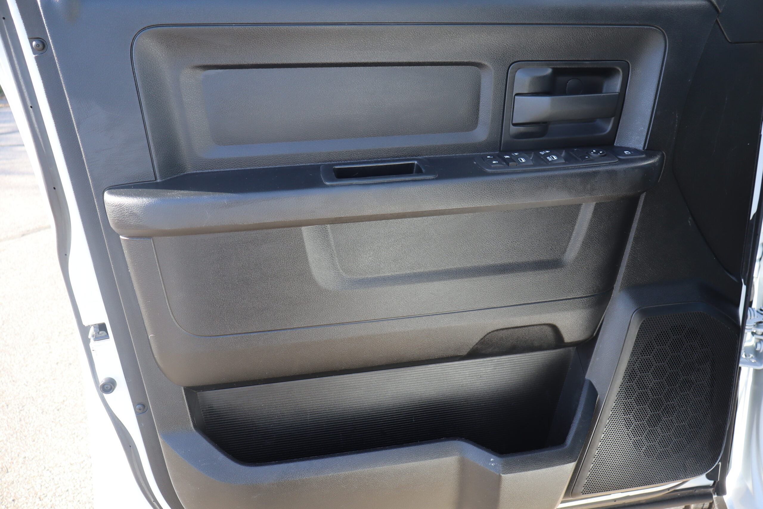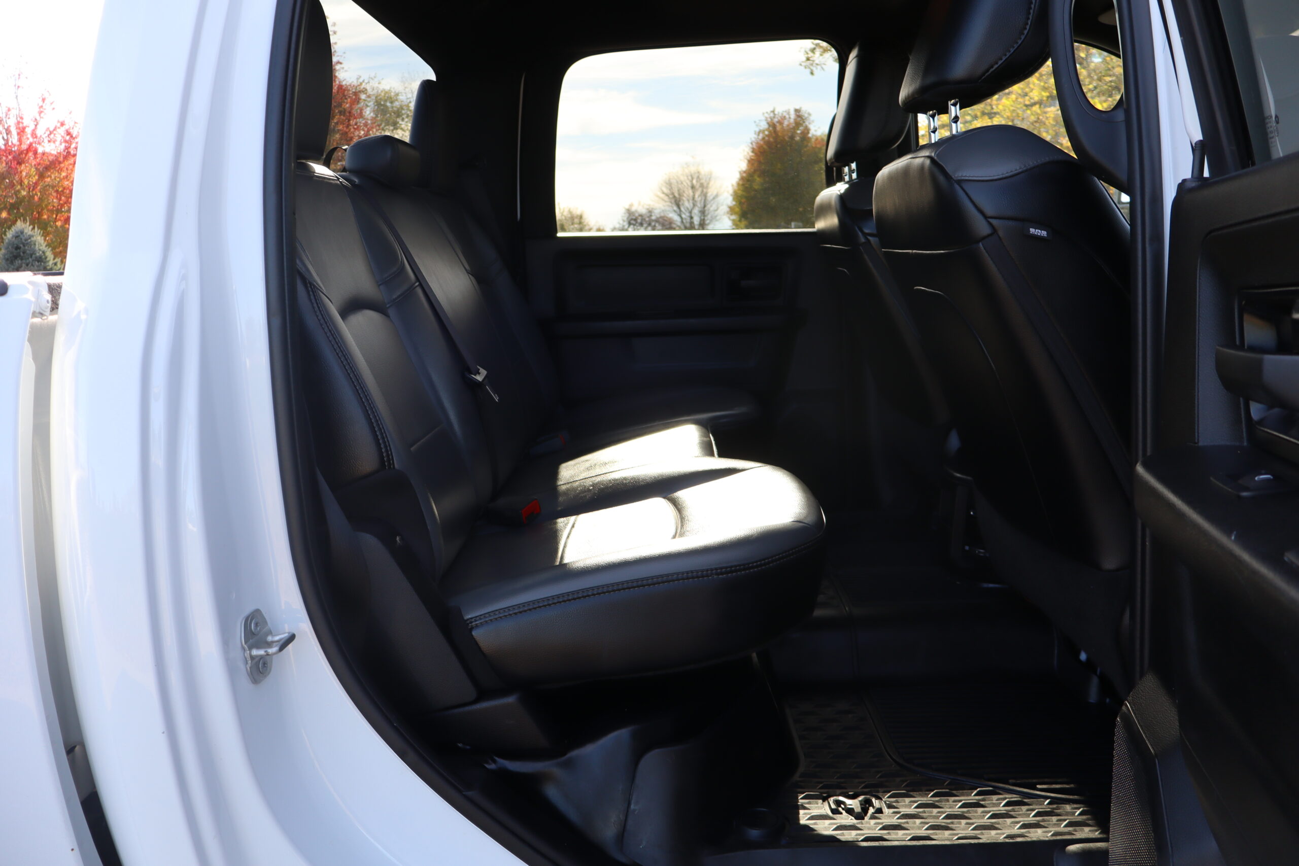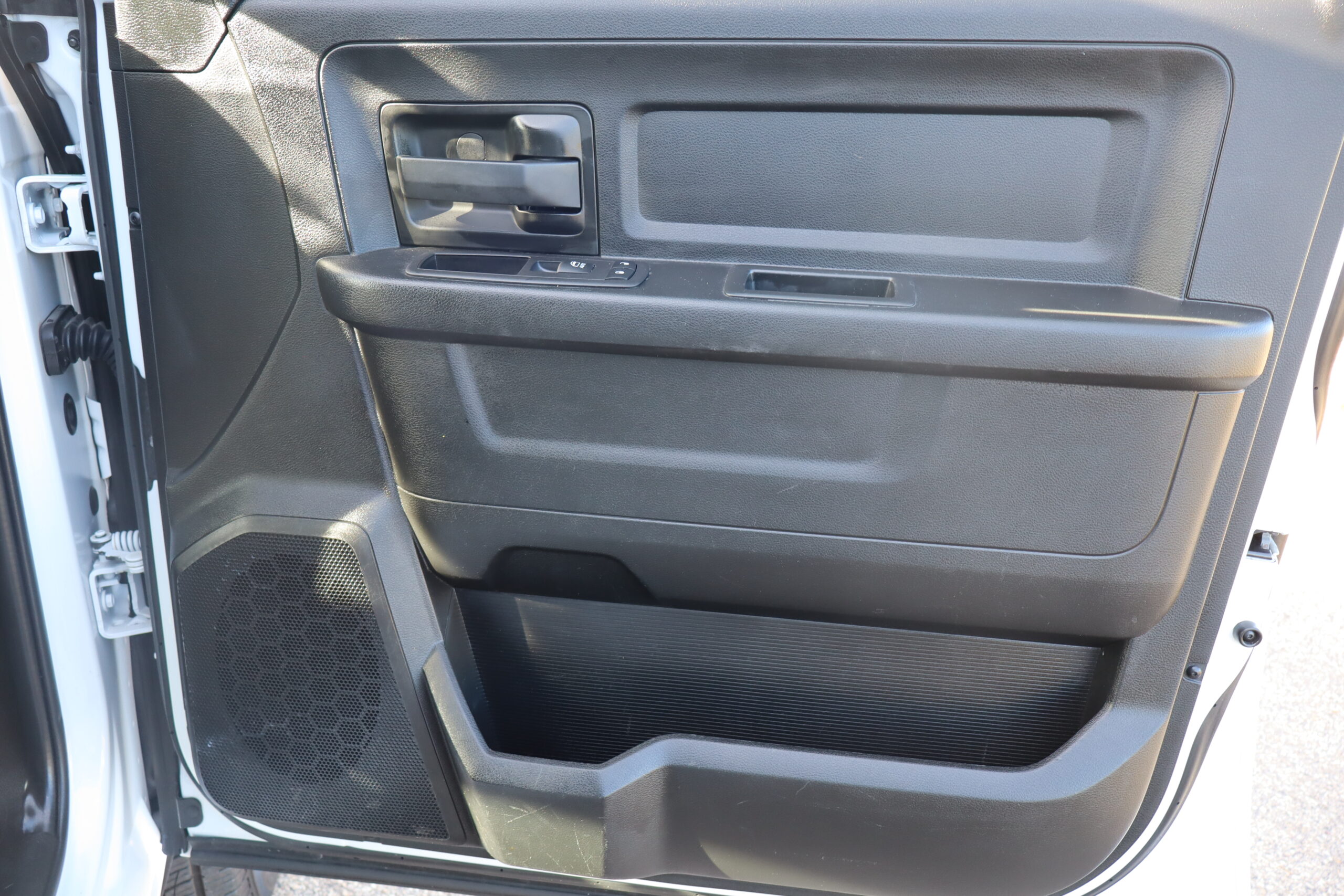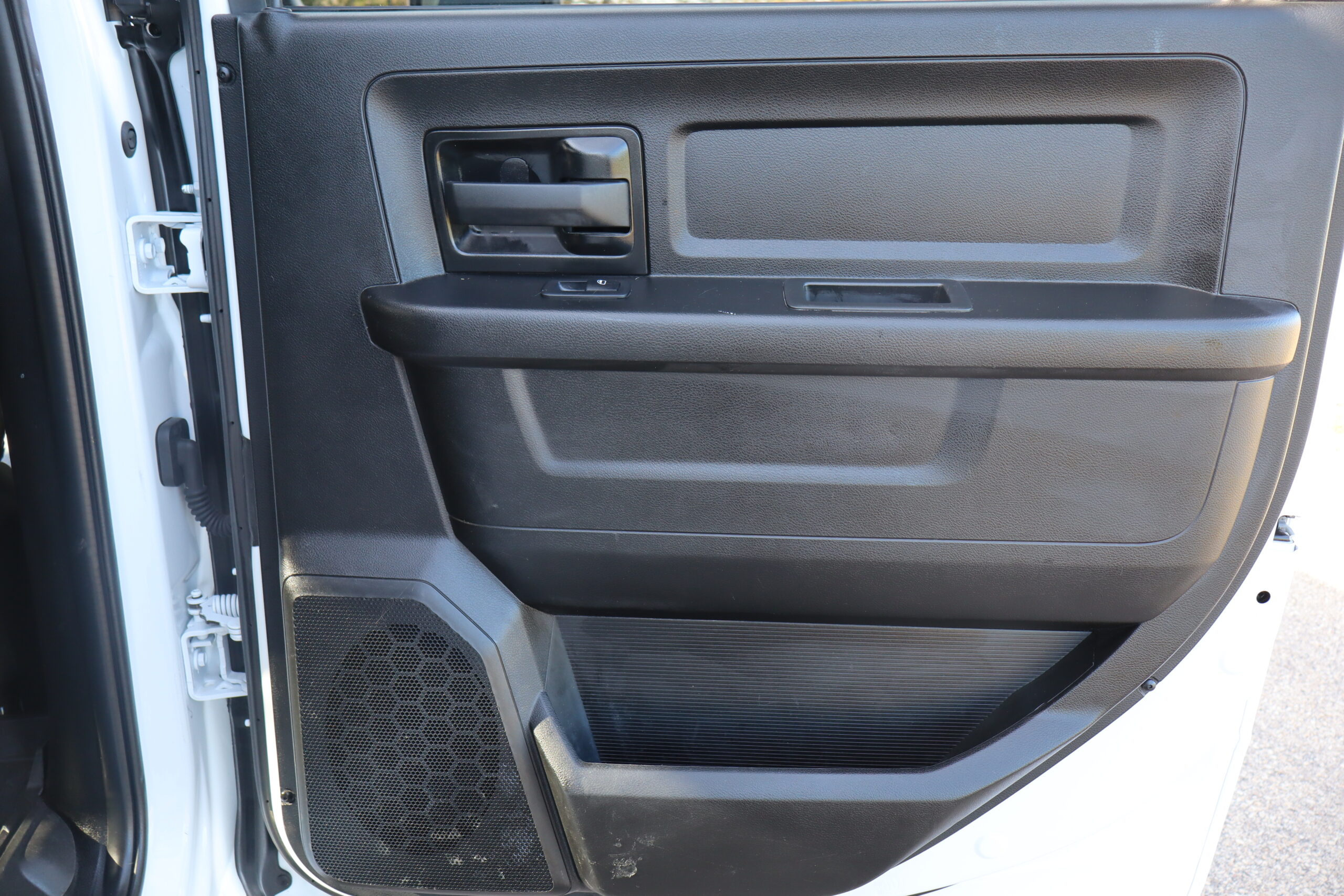 Exterior is Bright White, Interior is Diesel Gray heavy duty vinyl, 40/20/40 front seating with folding arm rest with dual storage compartment, traction control, power windows and power door locks, cruise control, air conditioning, U-connect 3 with 5″ touch screen, AM/FM stereo, XM satellite radio ready, AUX jack, back up camera, multi-function steering wheel controls, compass/temperature/mileage display in dash, day/night rear view mirror, dark rear tinted glass, remote entry, driver’s information center, under floor storage compartment, 110v outlet, heated/power folding extendable tow mirrors with indicator lights, fog lights, up-fitter switches, spray in bed liner, integrated brake controller, towing package and RV style and receiver.