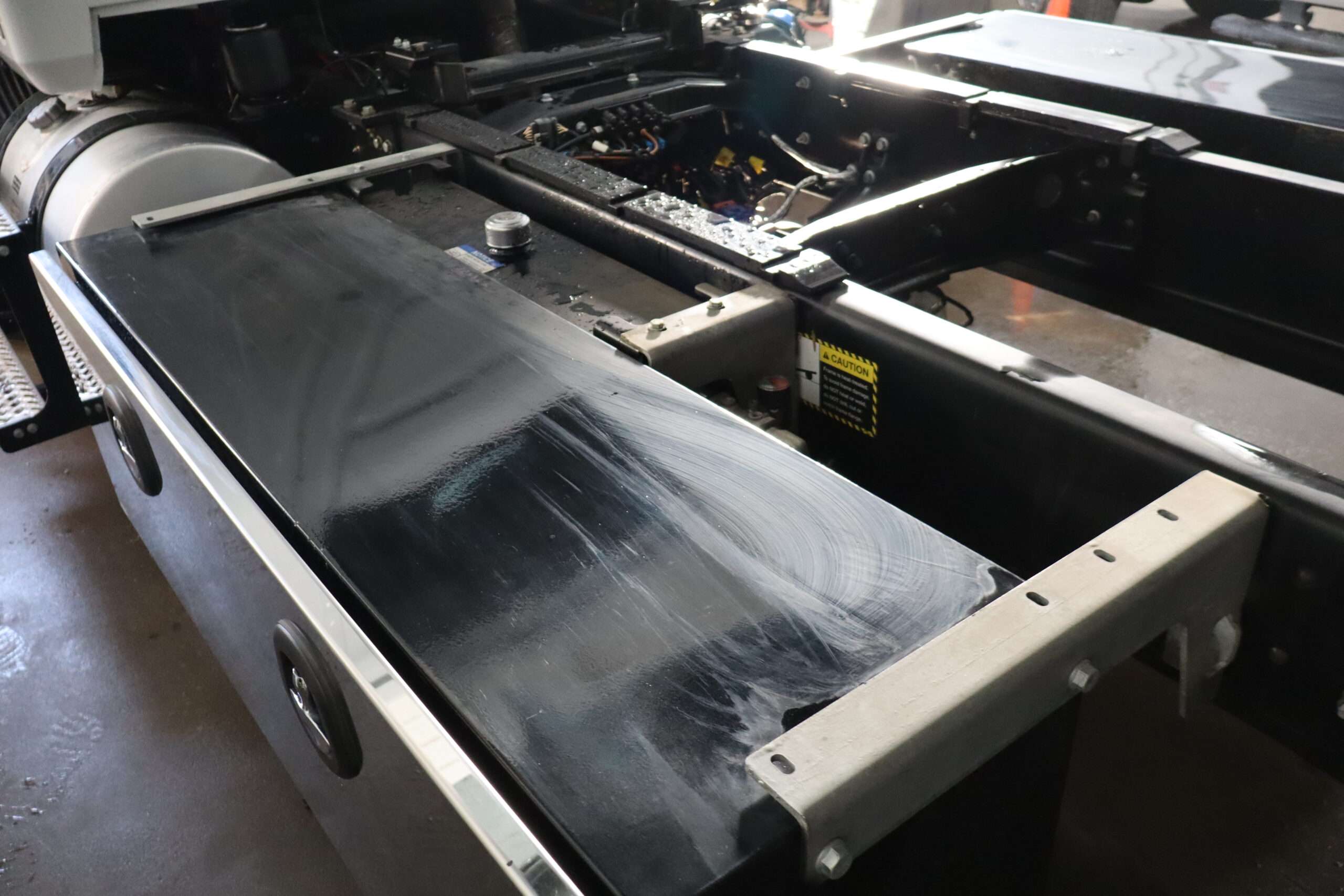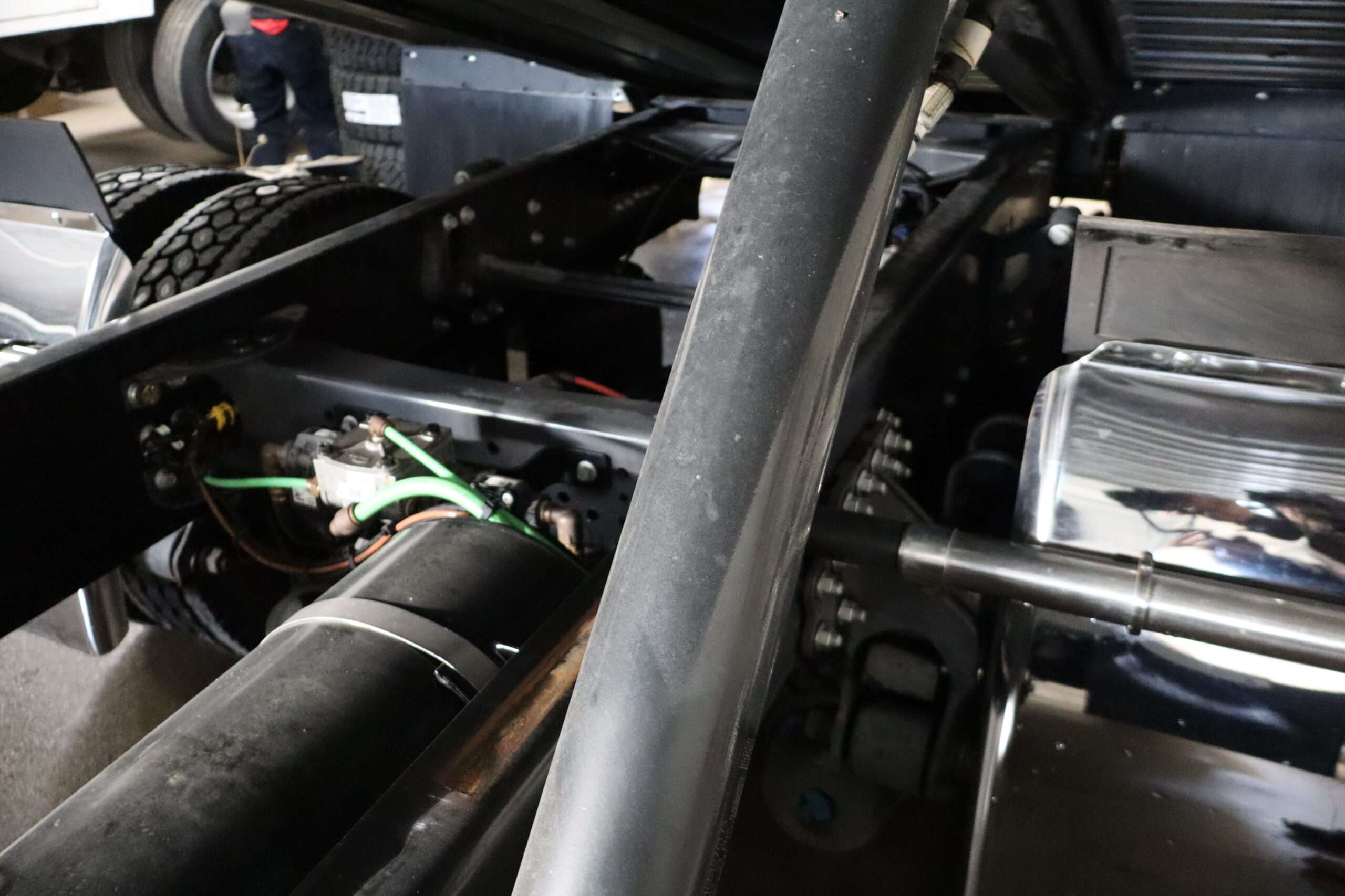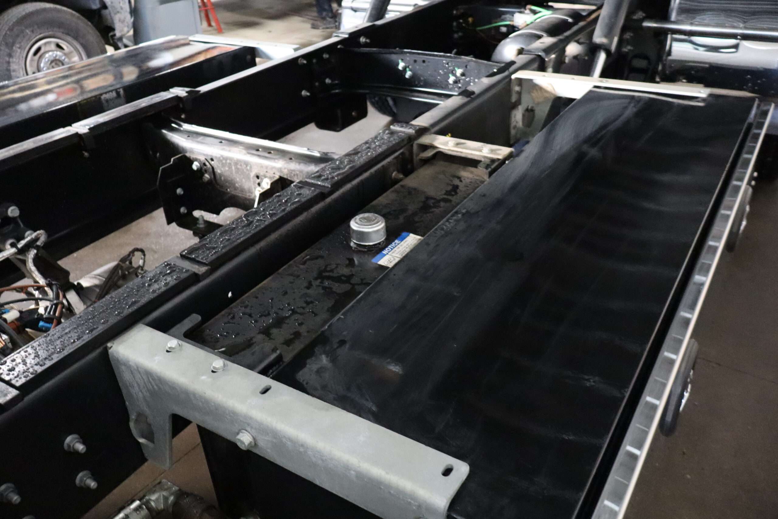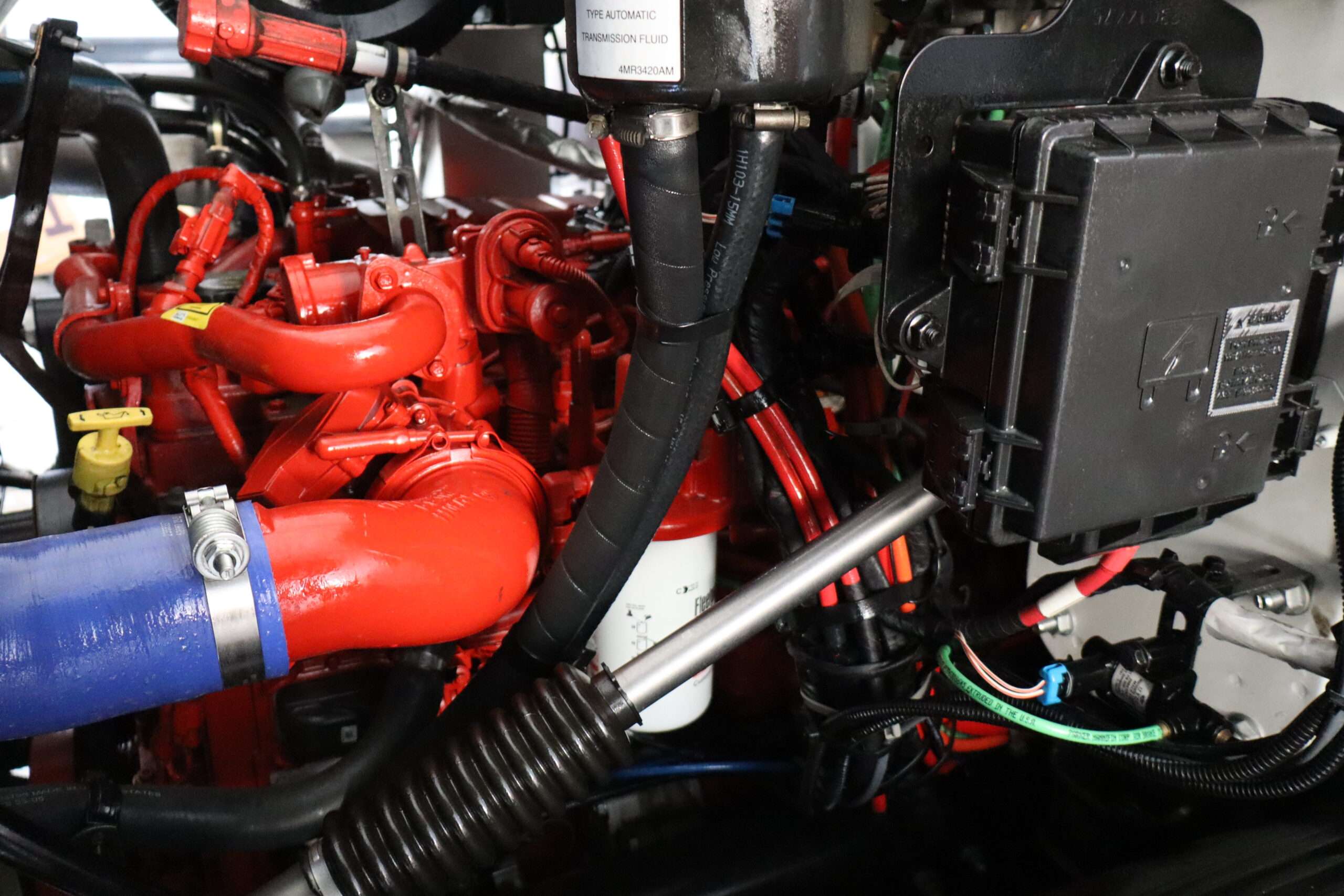 Motor is a 6.7L Cummins Turbo Diesel, (300HP), Allison 5-speed automatic transmission with optional tap shift, RWD, exhaust brake, locking rear axle, 122″ wheel base, air ride suspension, 22.5″ Accuride polished Alloys, 22570R22.5 Bridgestone Load Range H tires.