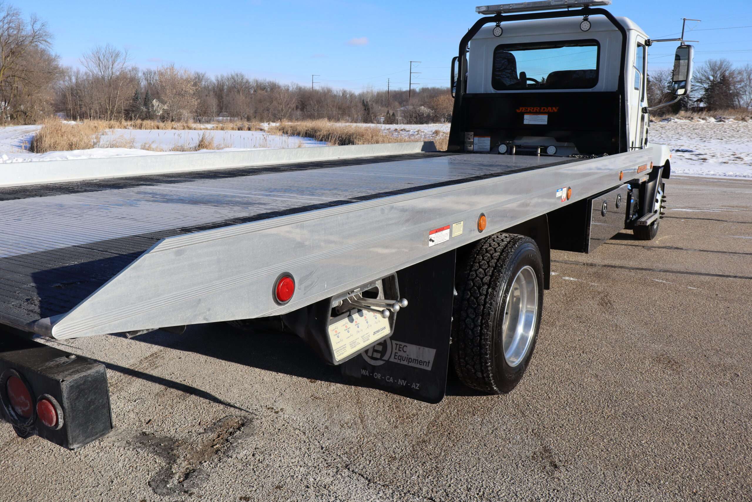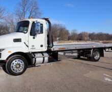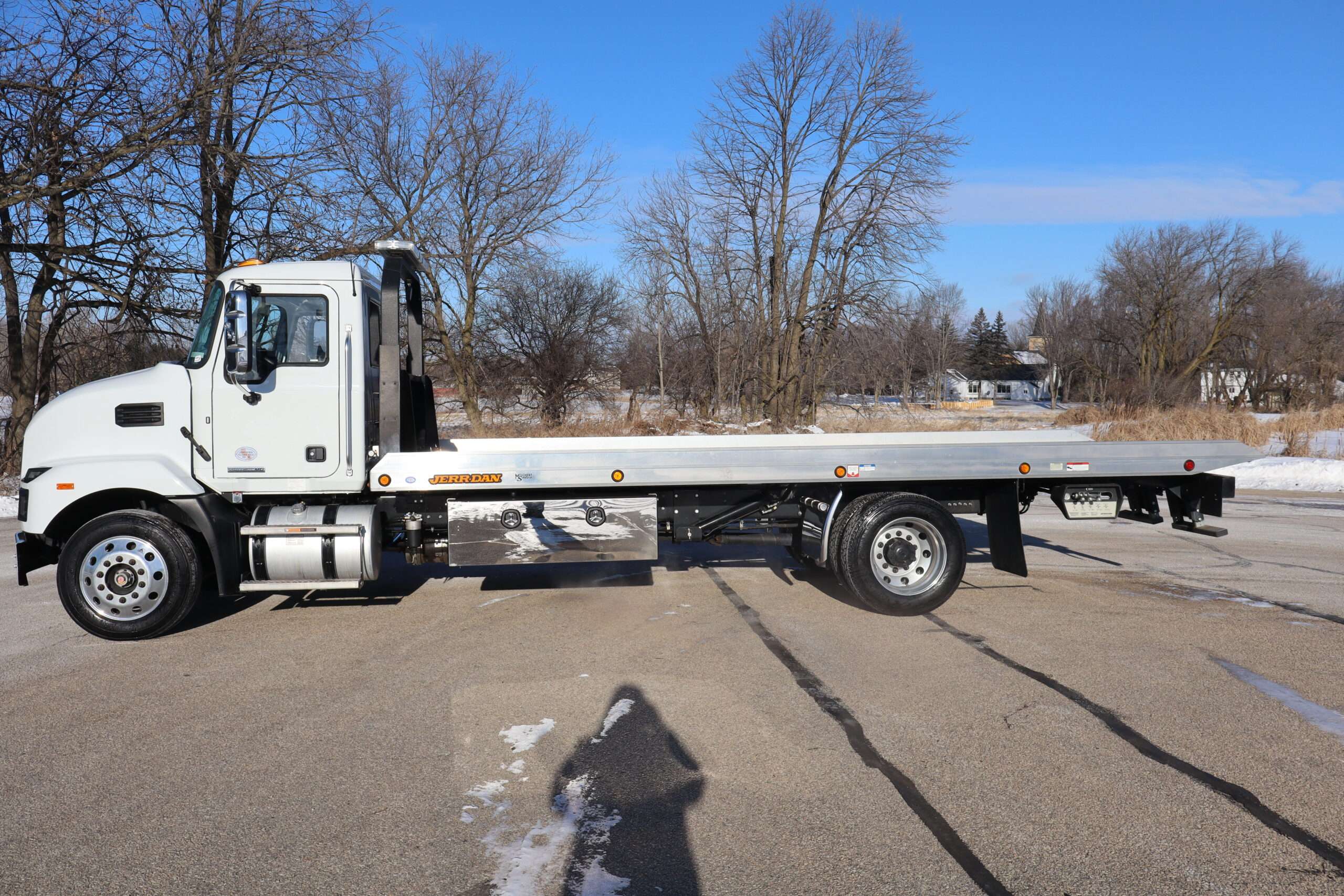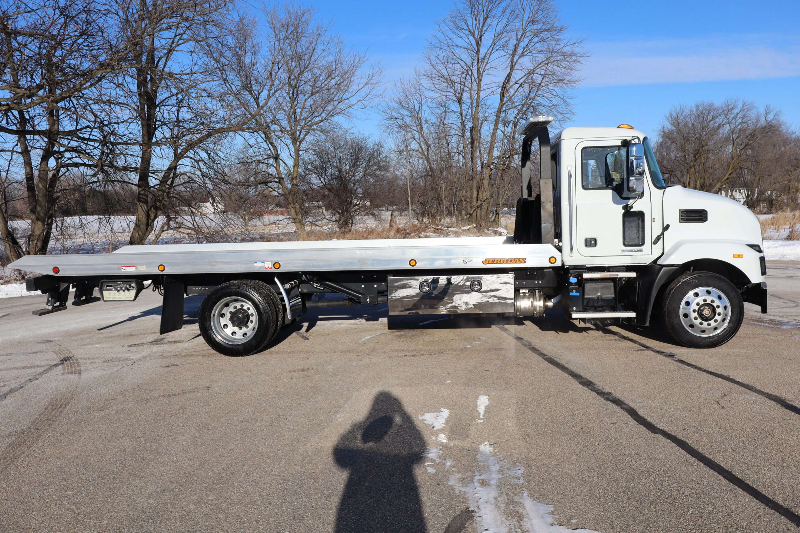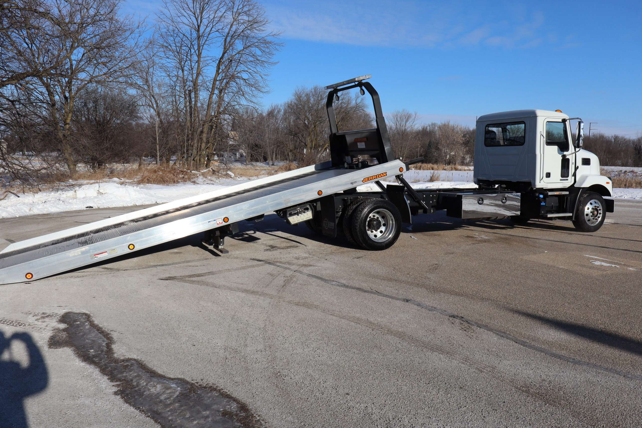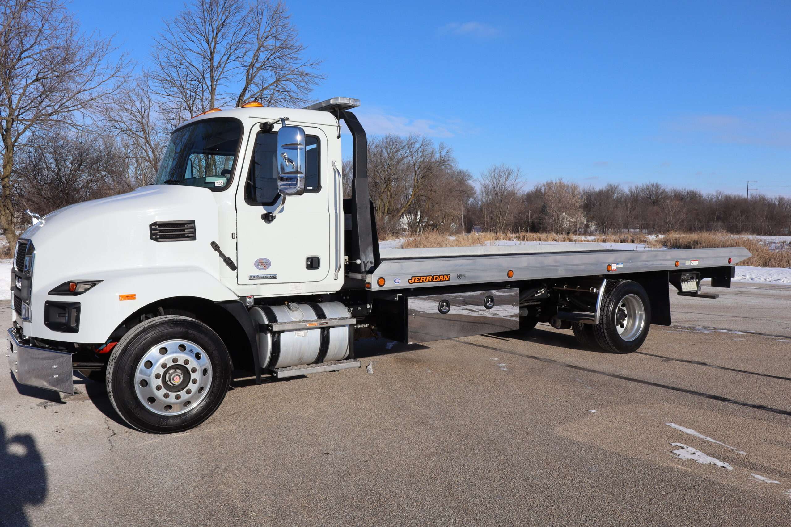2024 MACK MD, REG CAB, 25,995 GVW, 6.7L TURBO DIESEL, AISIAN 5-SPEED AUTOMATIC TRANSMISSION, RWD, AIR SUSPENSION, RWD, POWER/HEATED MIRRORS, BACK UP CAMERA, 22′ JERR-DAN ALUMINUM ROLL-BACK BED WITH RAMSEY HYDRAULIC WINCH, 2-UNDER BODY TOOL BOXES, 5’X18X18″ WIDE, POLISHED STAINLESS DOORS, LED WORK LIGHTS AND WARNING BAR, 22.5″ POLISHED WHEELS, BRIDGESTONE TIRES, SUPER CLEAN METICULOUSLY MAINTAINED 1 OWNER SOUTHERN TRUCK WITH 11,765 MILES AND A GOOD CAR FAX.