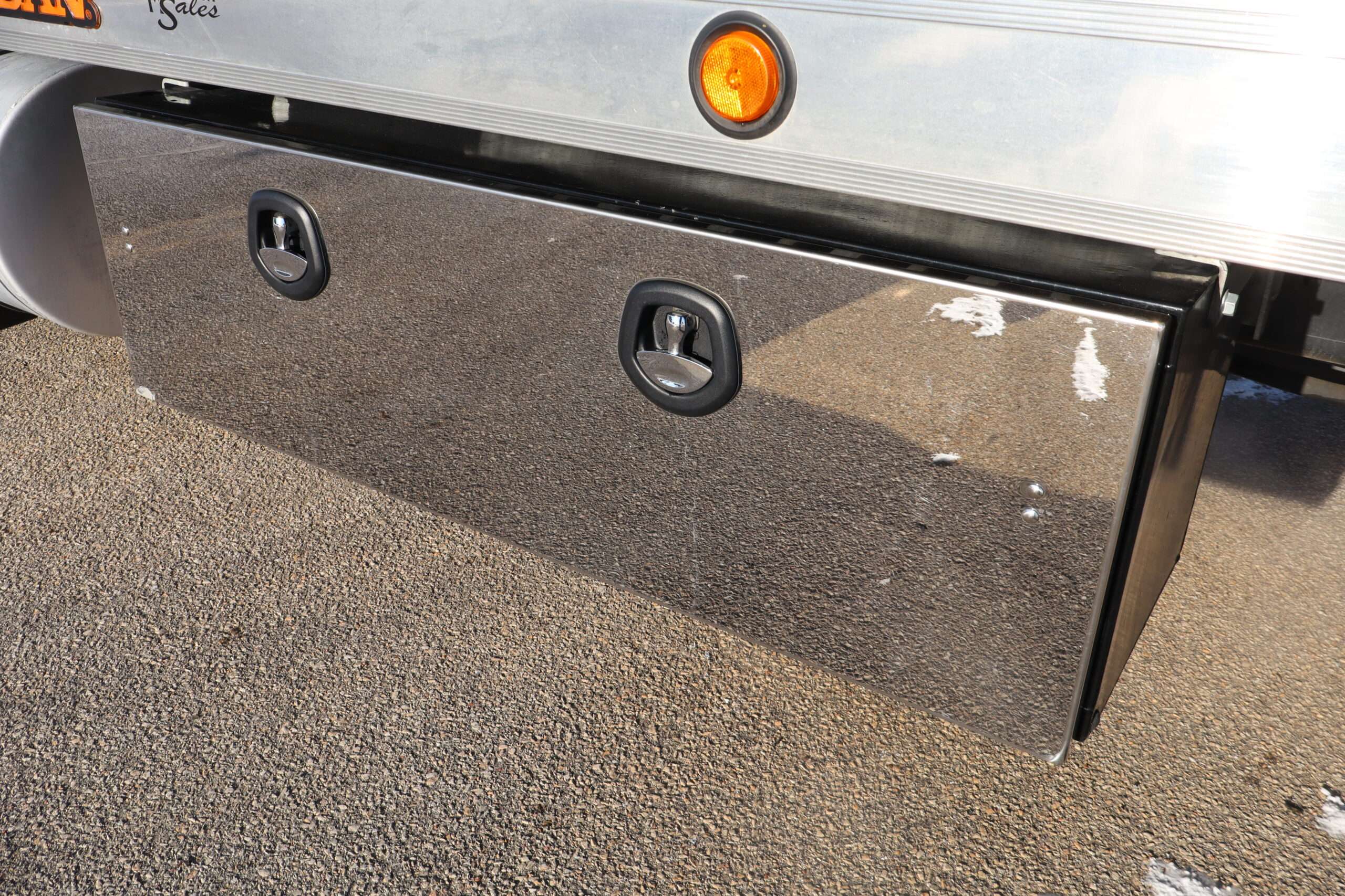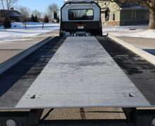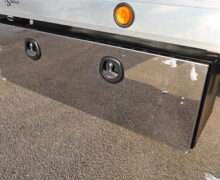 EXTRAS: 22′ Jerr-Dan aluminum bed with Ramsey hydraulic winch, 2-under body tool boxes with polished stainless doors, 5’x18″x18″ Stainless quarter fenders LED work lights and light bar.