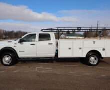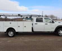 3C7WRNFL5RG2548942024 RAM 5500 CREW CAB, SLT, CAB CHASSIE, DRW, 6.7L CUMMINS TURBO DIESEL, 6-SPEED AISIN AUTOMATIC TRANSMISSION, 4WD, 19,500# GVW, 197″ WB, 11′ WARNER UTILITY/SERVICE BED WITH LADDER RACK, EXHAUST BRAKE, TOW PACKAGE, CHROME APPEARANCE PACKAGE, U-CONNECT 3 WITH 5″ APPLE CAR PLAY, ANDROID AUTO, KEYLESS ENTRY, THIS IS A VERY CLEAN METICULOUSLY MAINTAINED RUST FREE SOUTHERN 1 OWNER TRUCK WITH ONLY 62,740 MILES AND A CLEAN CAR FAX WITH REMAINING FACTORY 5YR/100,000 MILE POWER TRAIN WARRANTY.