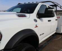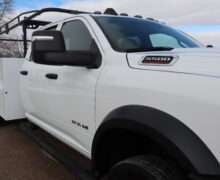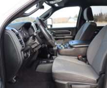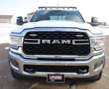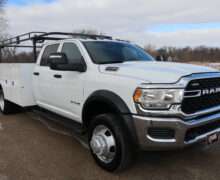 Motor is a 6.7L Cummins Turbo Diesel, shift on the fly 4WD, 6-speed Aisin automatic transmission with optional tap shift, exhaust brake, 4.44 axle ratio, 19.5″ Gray Steel wheels with Near New 225/70R19.5 Load Range G tires.