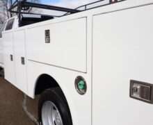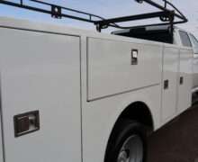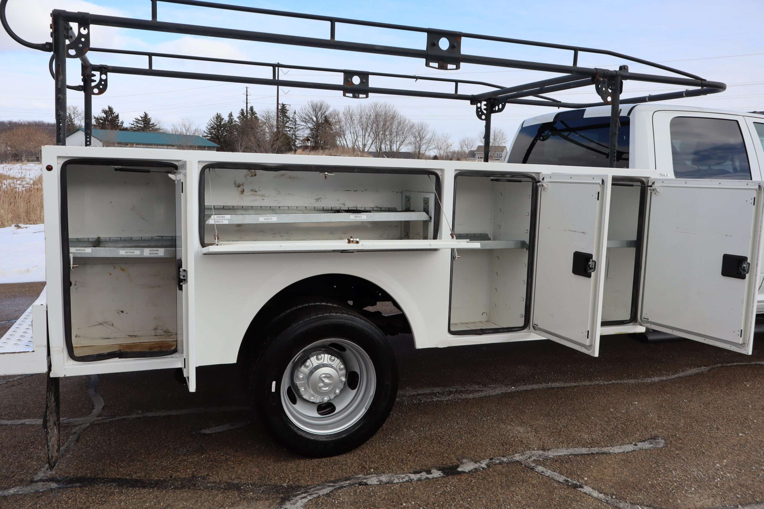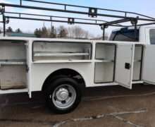 EXTRAS: 11’x7′-10″ Warner Utility/Service bed with ladder rack.